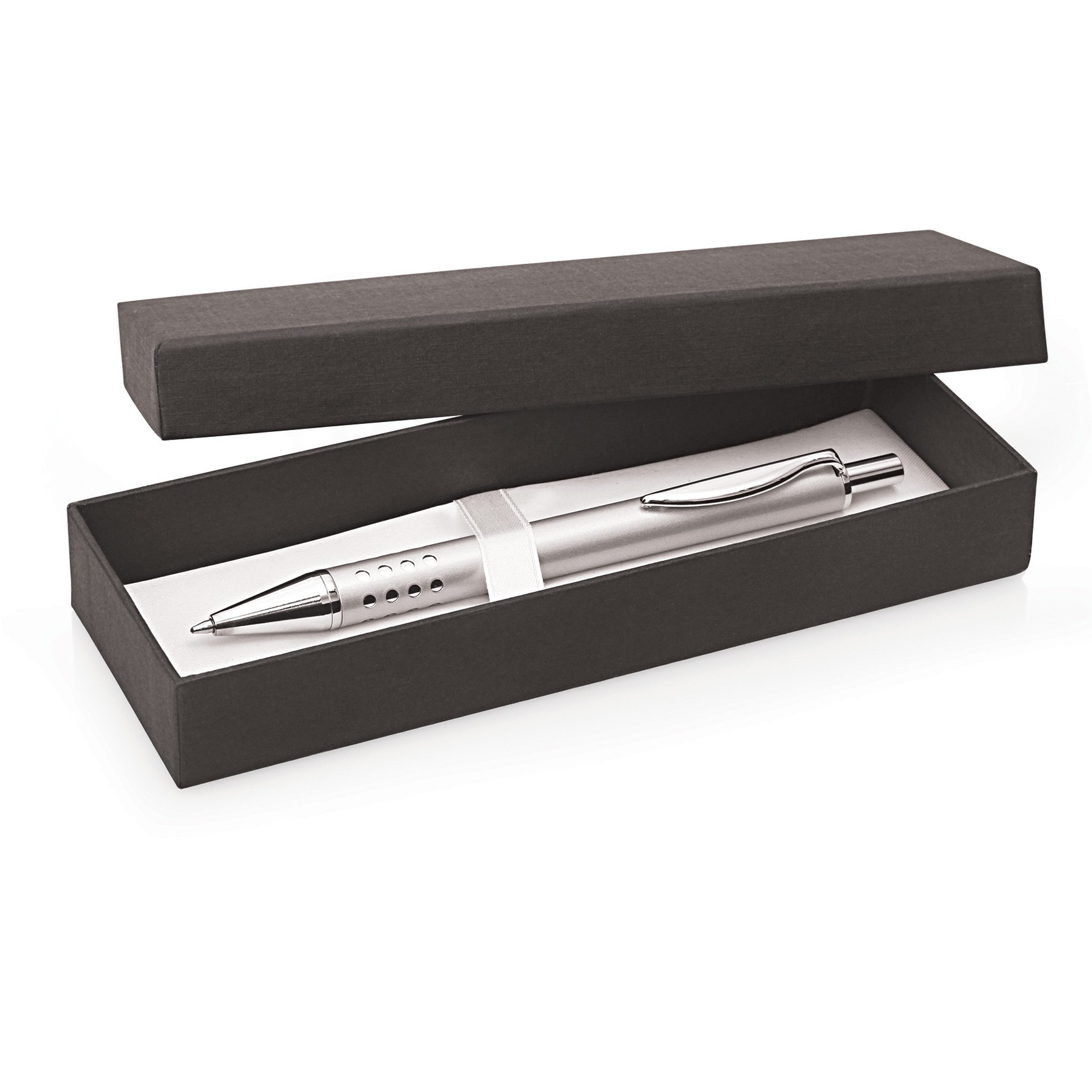 Luzio Pen Gift Box offers simple pen gift packaging for one pen (pen not included). Presented in smart black with a simple lift lid, this gift box can be printed with your client's promotional logo, via the screen print method, complementing the branding on the pen (not included) to complete the set for a truly professional gift set.
