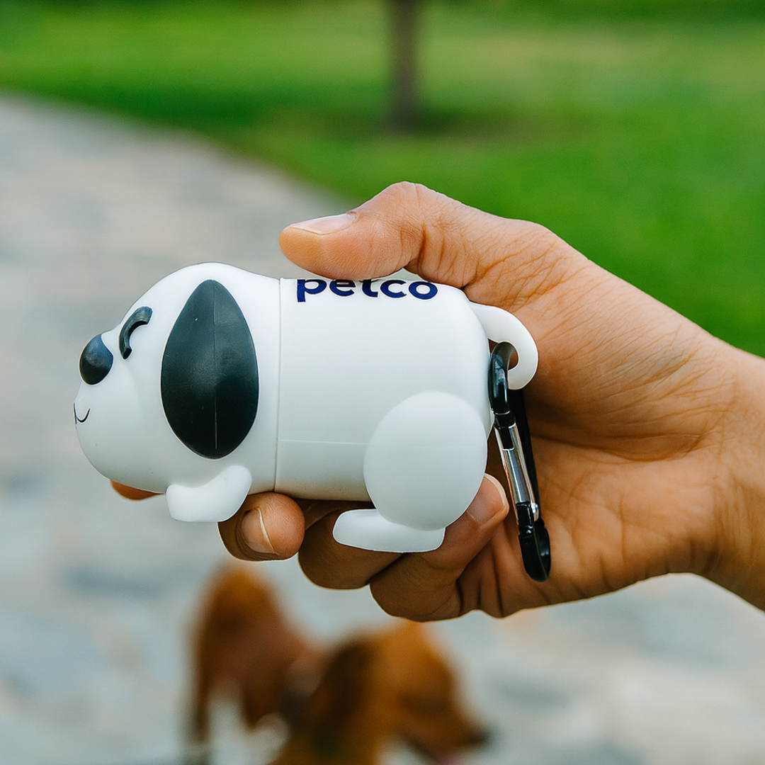 The recycled dog-shaped waste bag dispenser makes cleaning up after your pet easy and eco-friendly. Designed for convenience, it dispenses one bag at a time, ensuring hygienic and hassle-free walks. The bags are also non-biodegradable. Refillable with standard-size waste bags, it helps minimise waste and save money. Includes one roll of 12 bags and a carabiner for easy attachment to your leash.