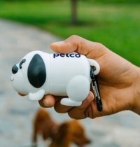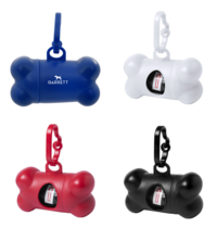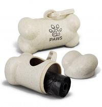 Handy pet waste bag dispenser made from polypropylene with a useful clip for attaching to bags, collars and leads. The dispenser features a pop-open lid and includes 15 waste bags made from polyethylene.