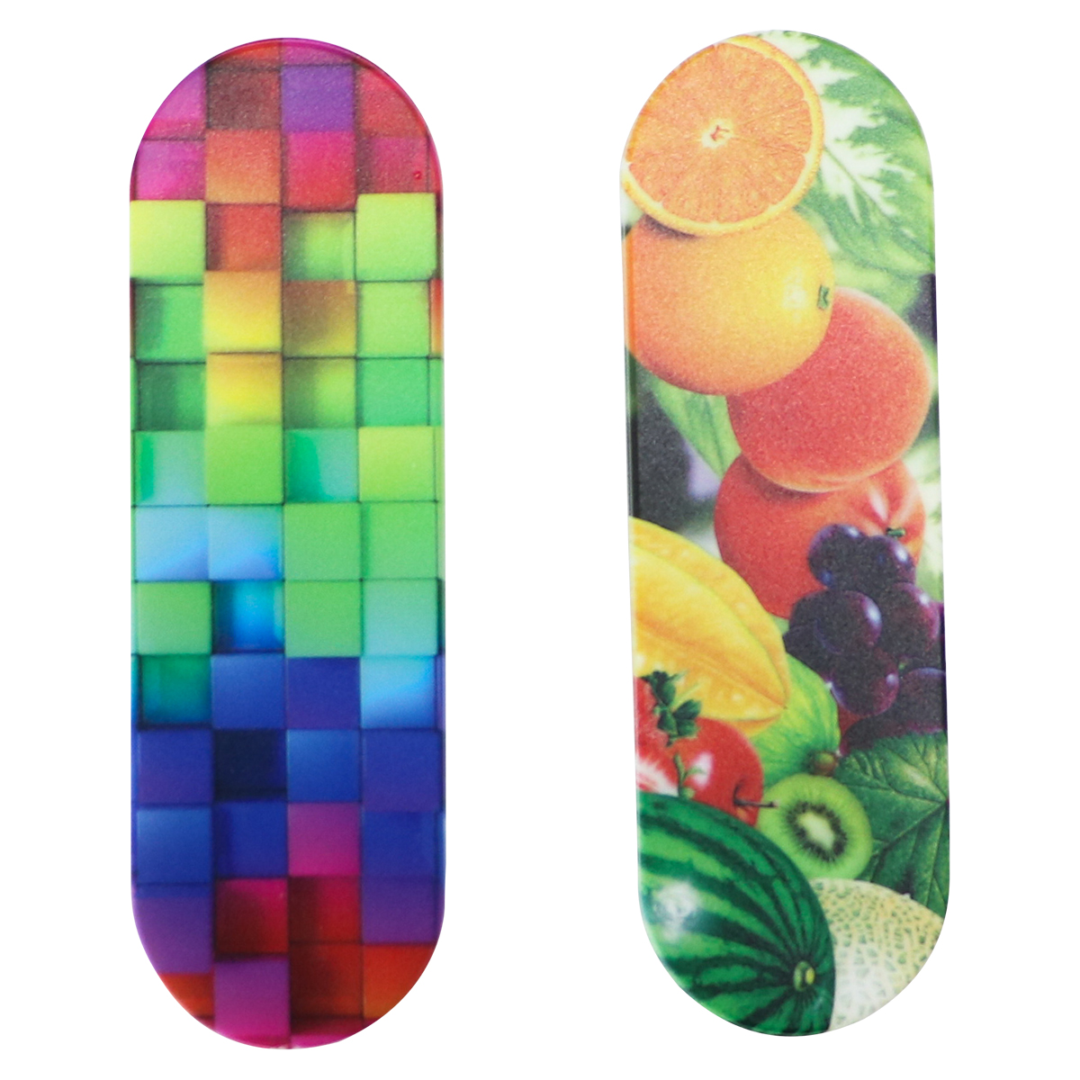 This smartphone accessory gives you a better grip, helps prevent drops, and works as a horizontal stand for hands-free viewing. When not in use, it folds flat and becomes a full-surface canvas for your branding. Please note: adhesive may not adhere well to silicone phone cases. Digital print and bleed are available only on white material.