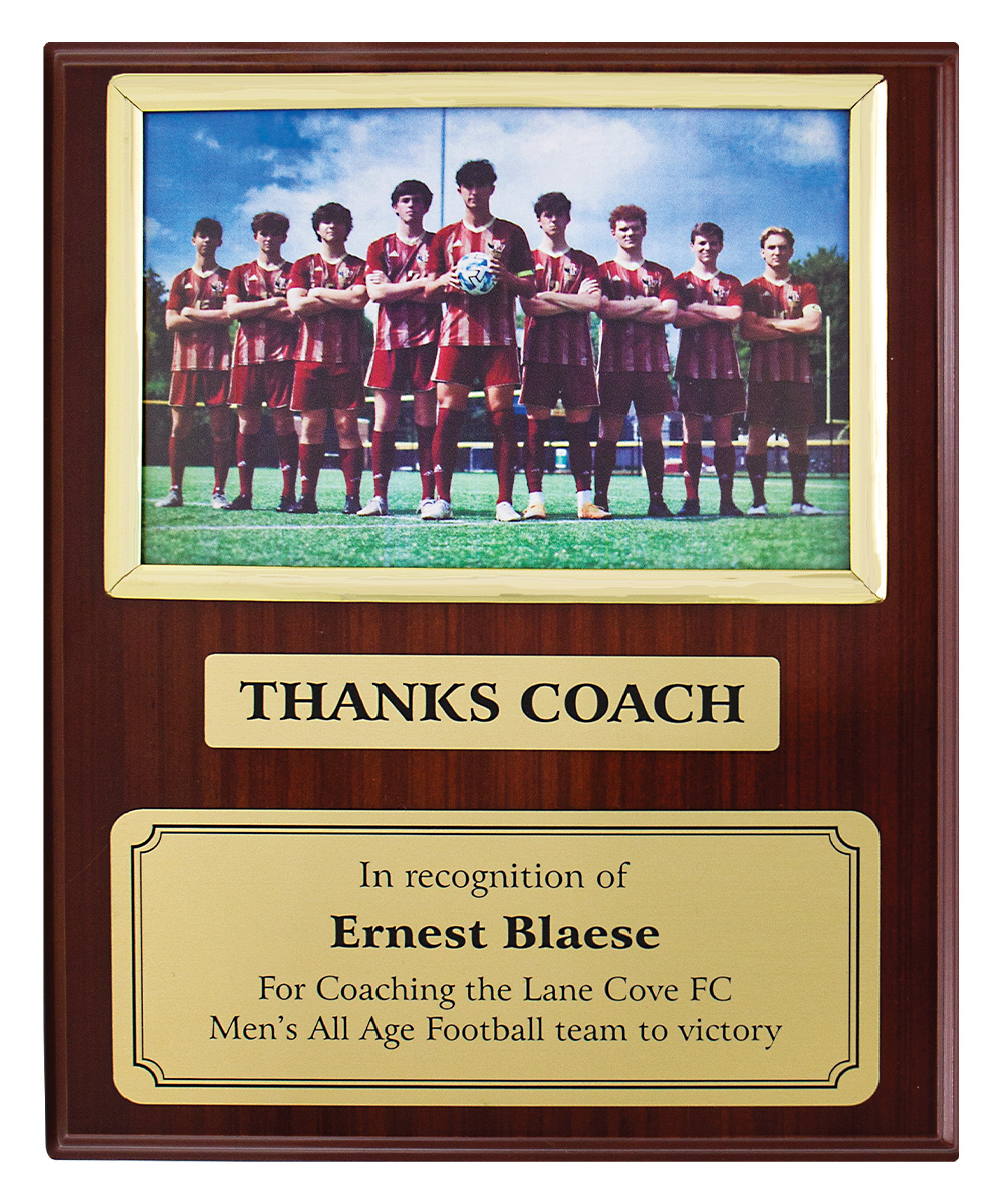 Gift & award idea that incorporates an elegant plaque with a slide in frame to show off that treasured photo. Plenty of space for your engraving.