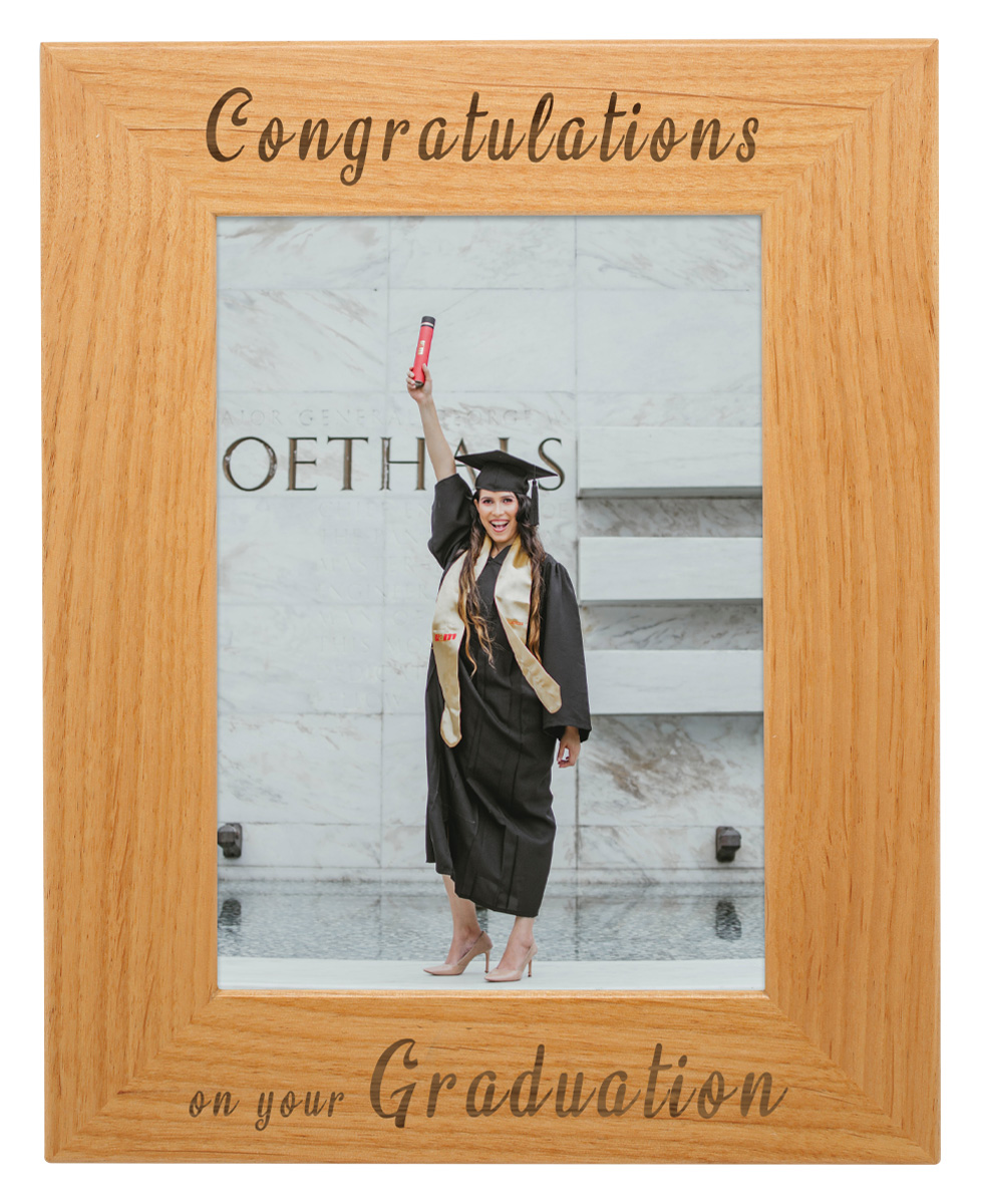 Beautiful wood photo frame makes an excellent gift idea. Request engraving to make this a truly personal memento. Photo protected by glass lense. Hang or stand vertically or horizontally.