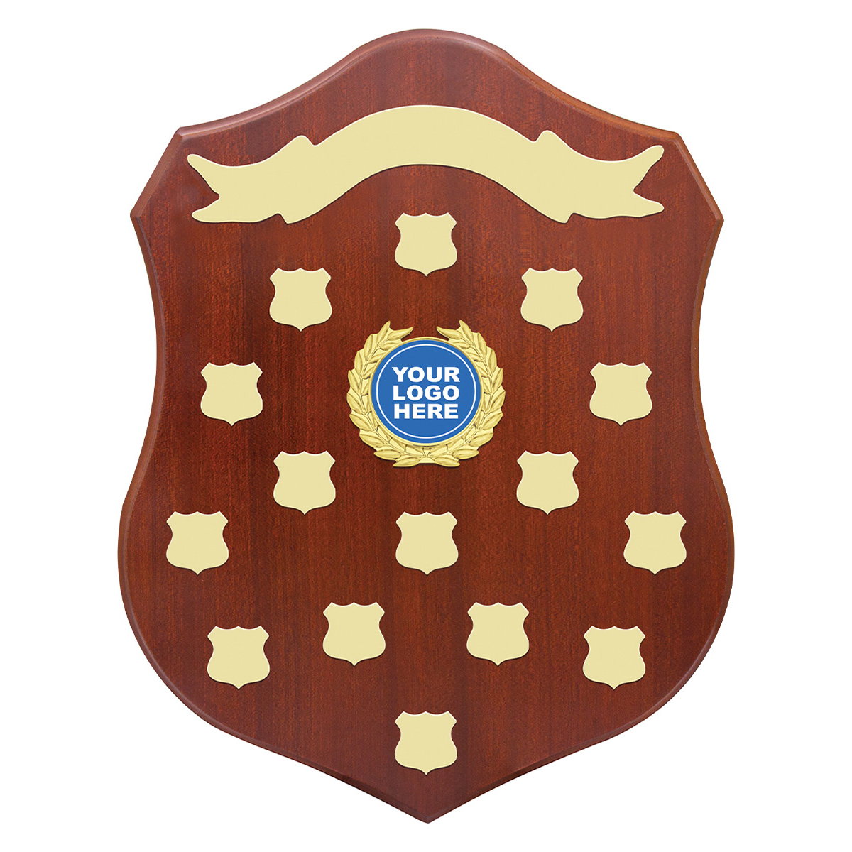 Finished in classic walnut timber veneer, the Caledonia Shields offer a brilliant look & feel to your shield perpetual award. Include your custom logo.