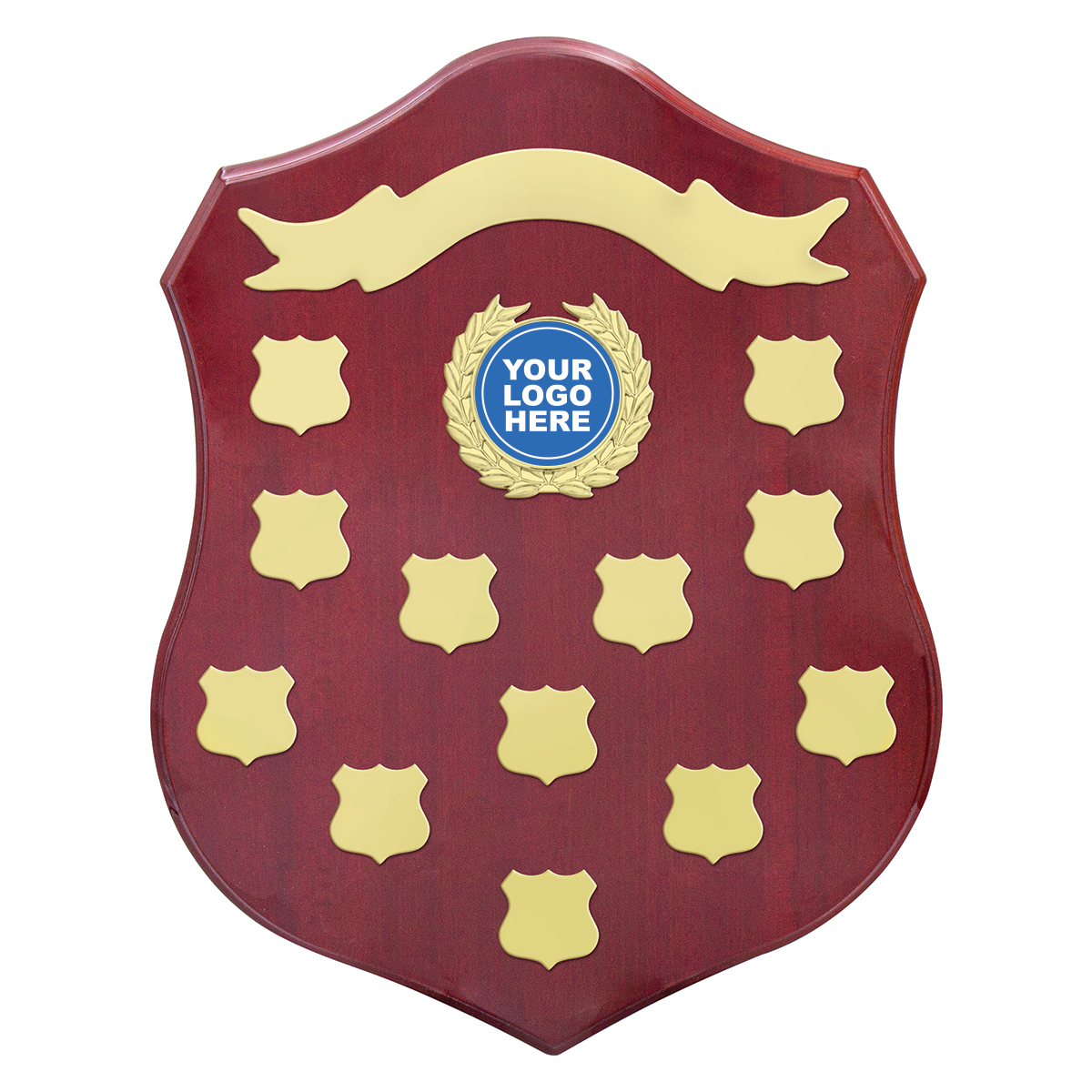 The Premium Shields are finished in beautiful gloss rosewood colour - ideal to recognise top achievement for your club or team.
