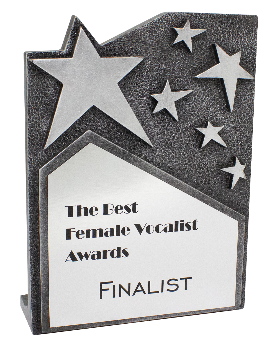A substantial plaque style trophy that features distinctive star elements. Ample space for your engraving requirements. Gold, silver and bronze models available.