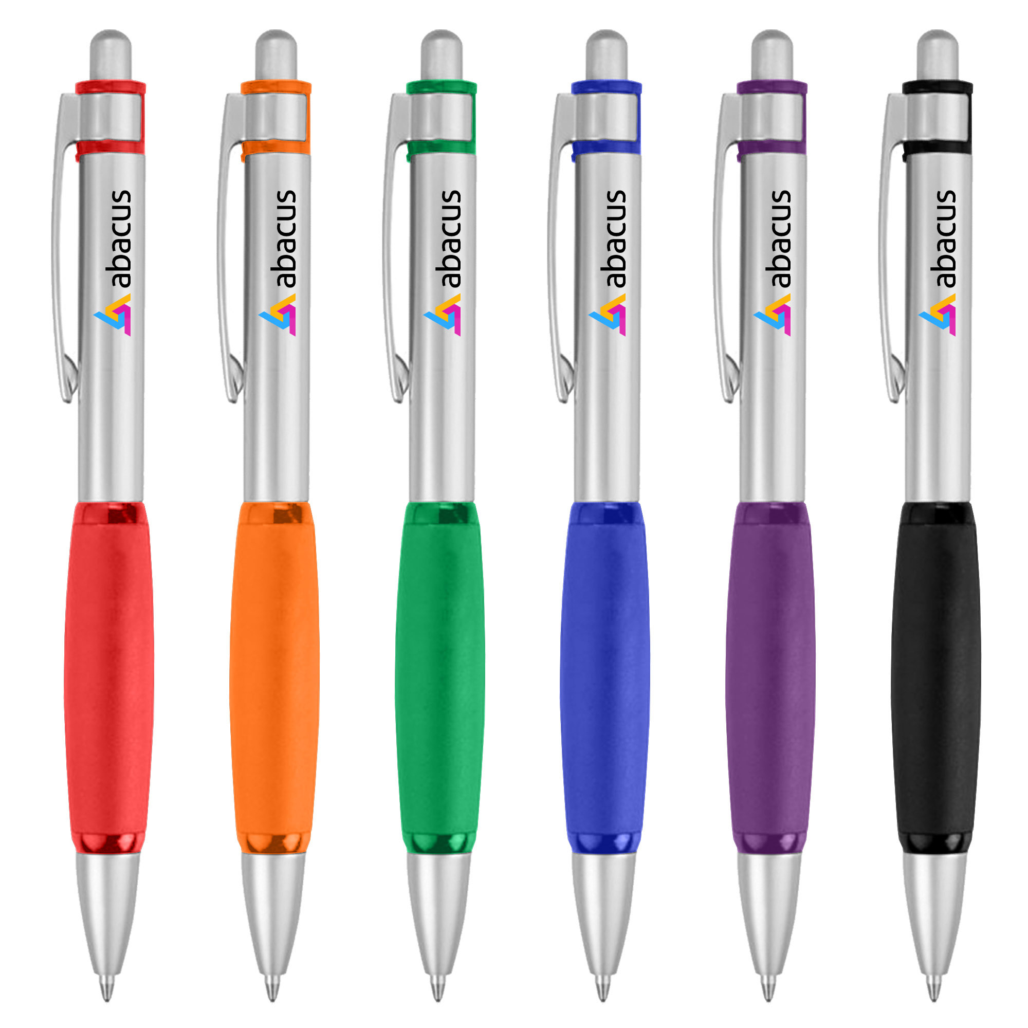 Most popular and cost effective metal pen matt silver barrel with soft-touch rubber grip in a range of 6 colours supplied with plastic Parker-Type German manufactured black ink refill 1200 meters writing distance tungsten carbide ball provides you with quality writing.