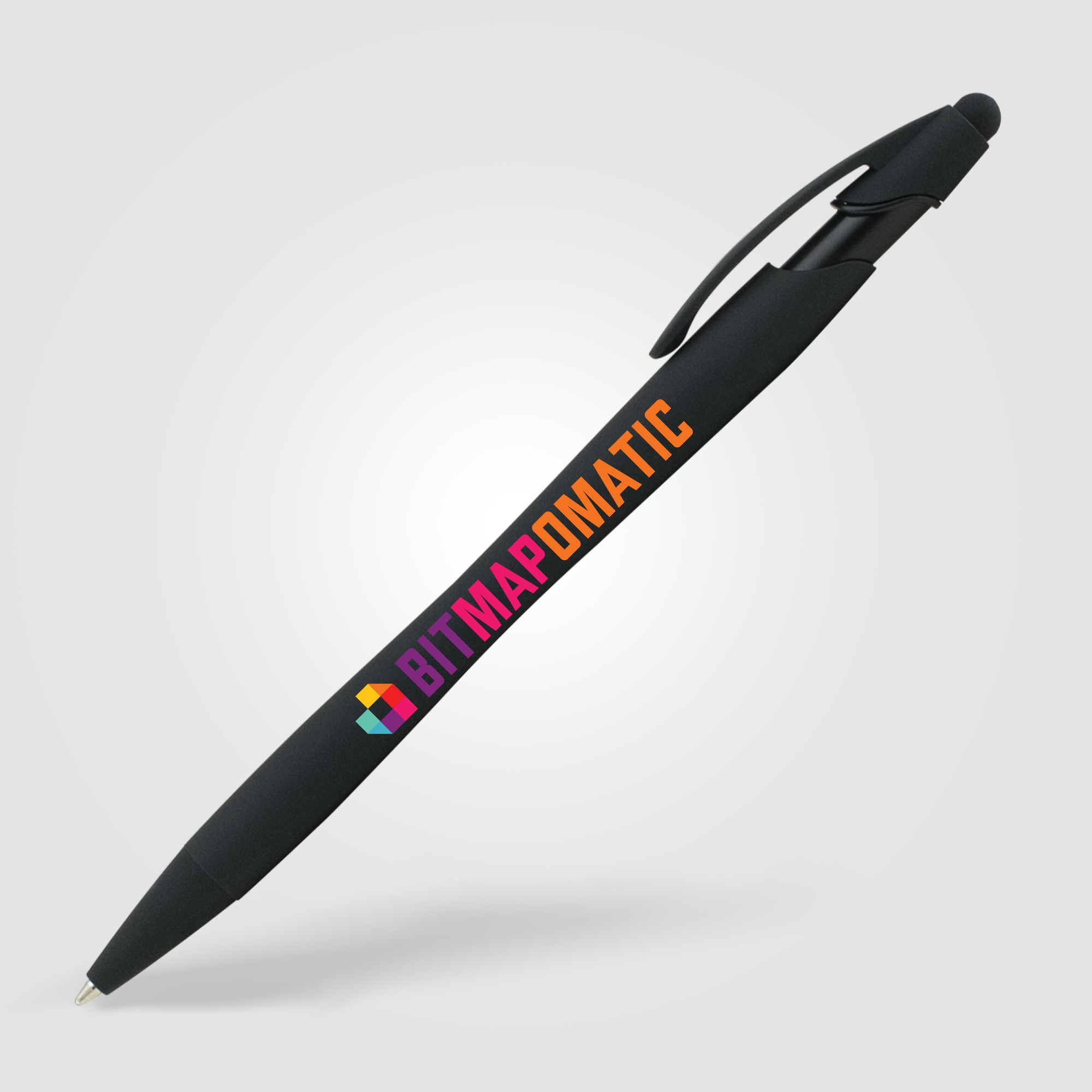 The La Jolla Softy Pen with Stylus is a sleek and elegant plastic pen designed for everyday use. Featuring trendy black trim and a soft-touch metallic rubberised finish, it feels great in the hand and looks stylish. This medium black ballpoint also includes a stylus at the top, creating the perfect 2-in-1 promotional gift. Personalise with your logo using ColourJet, our vibrant full-colour inkjet imprint technology.