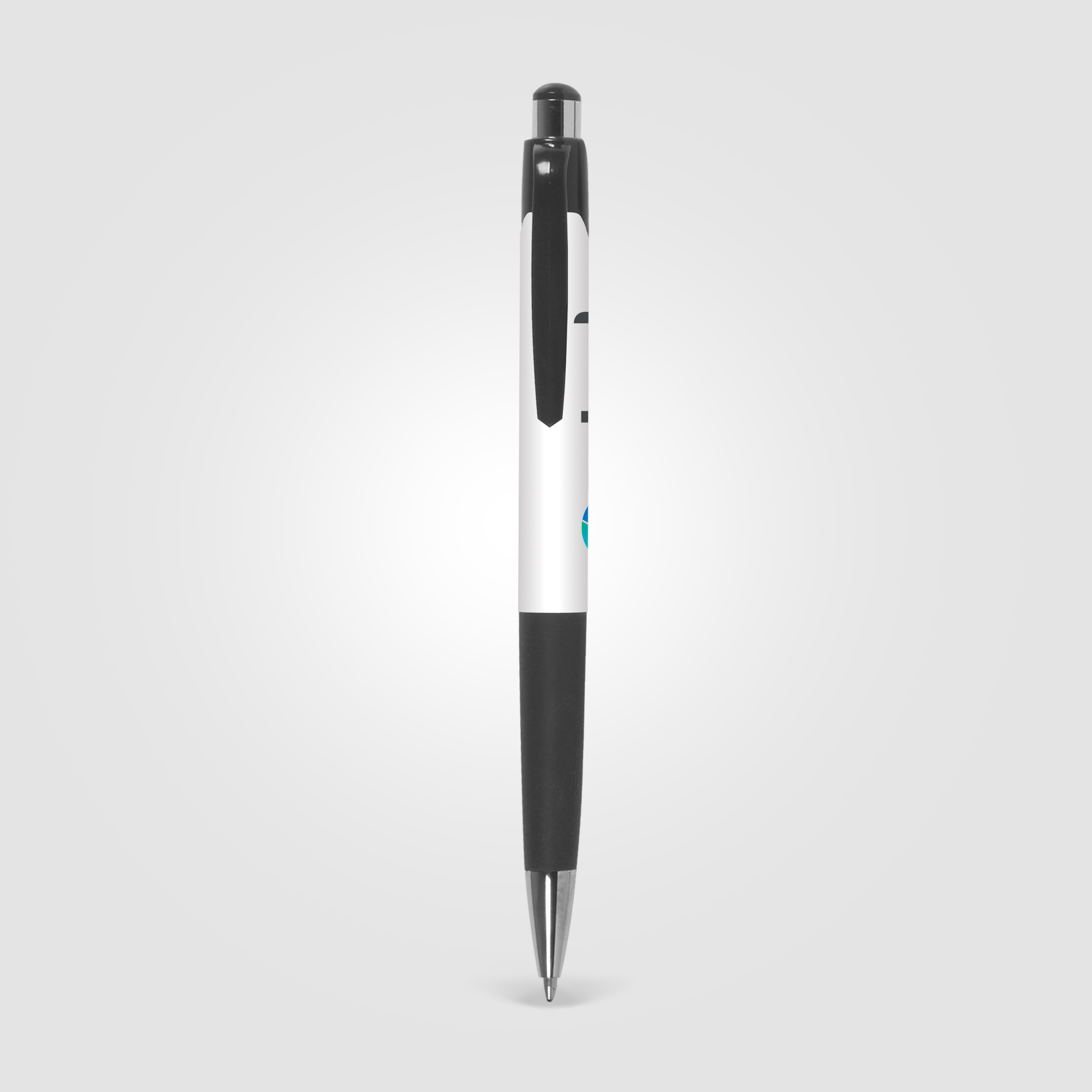 Cost-effective retractable plastic pen with white barrel, coloured trim and chrome accents. 8 vibrant colour options. Supplied with black writing ink. Price includes 1-colour screen-print to one position.