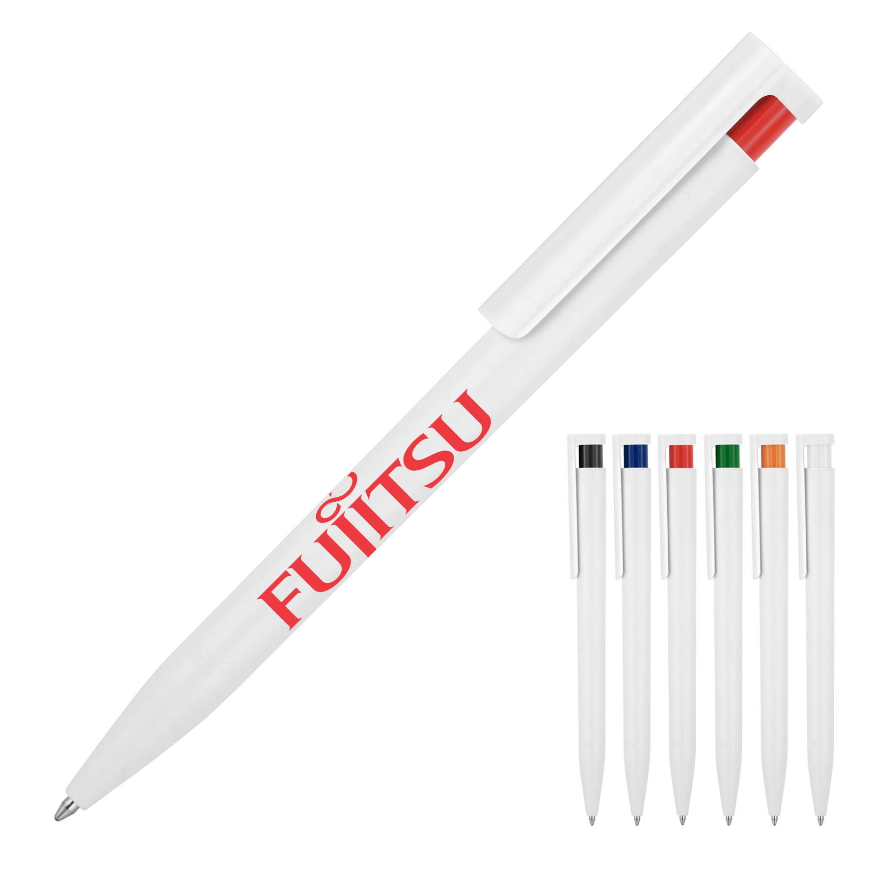 Emanating an image of resilience, the Uno High Gloss Ballpoint Pen evokes notions of quiet confidence with an accented tip that also blends sophistication. Available in gloss white with coloured accent and suitable for pad print, full colour digital print, and rotary screen print.