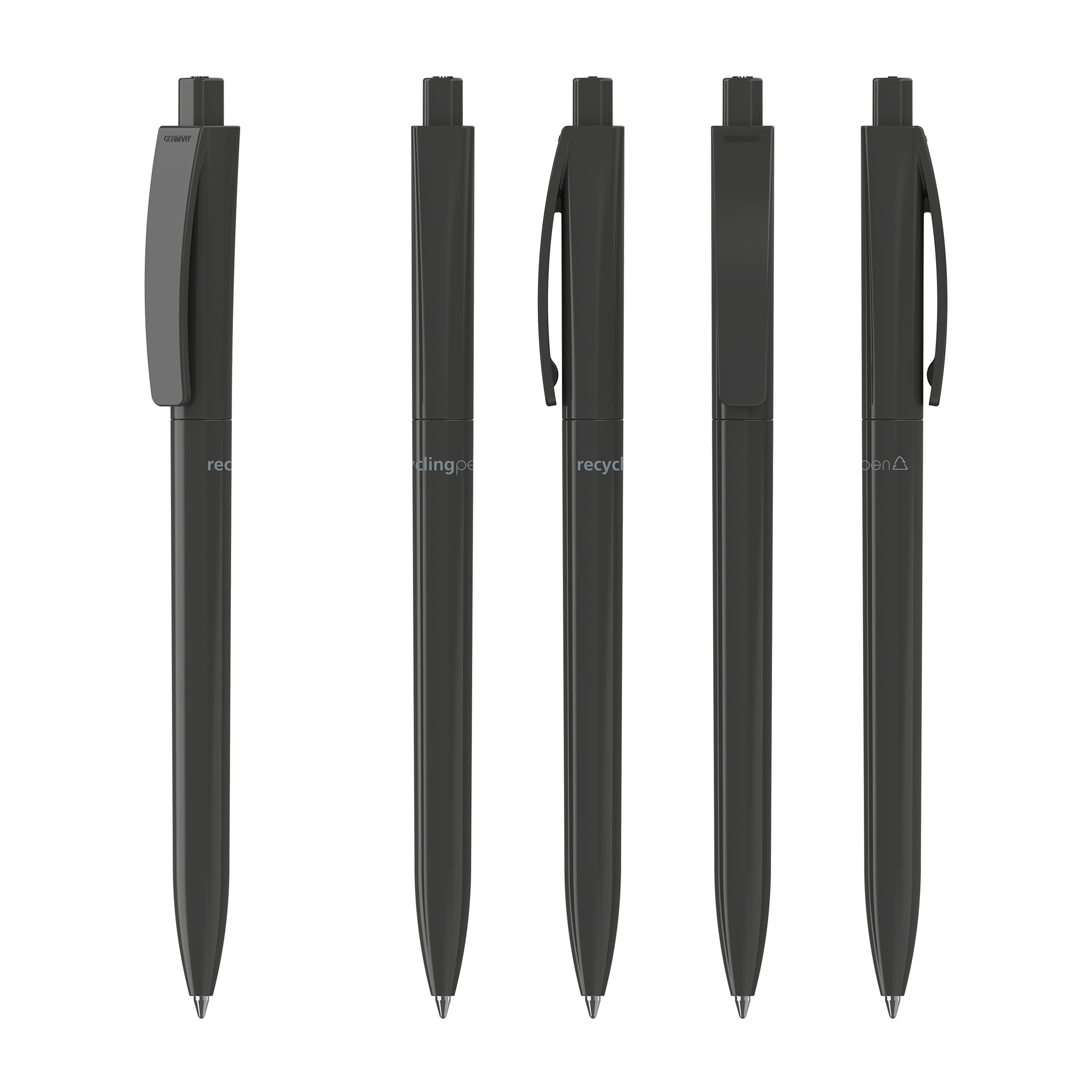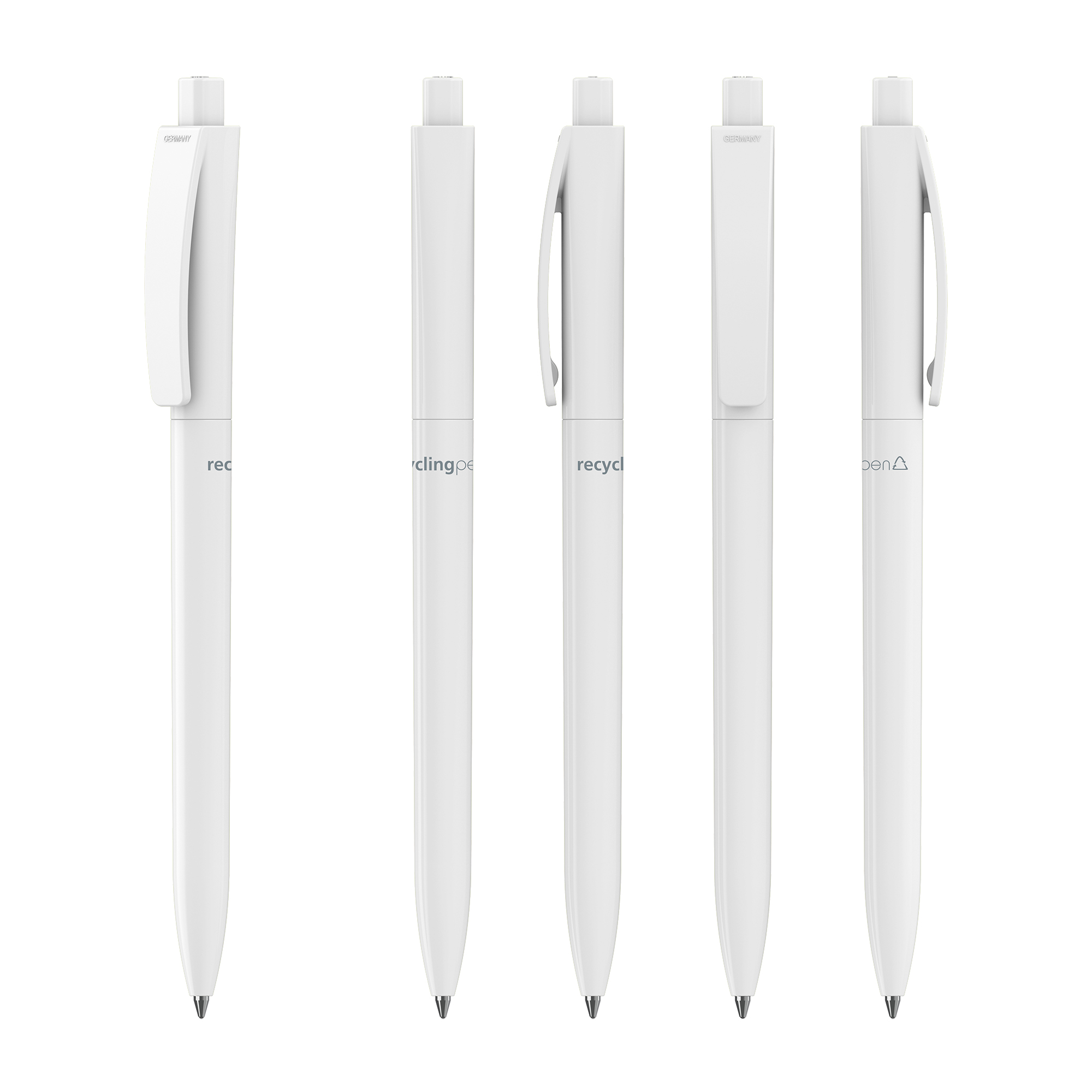 Klio the iconic European brand since 1900 now available worldwide. (Klio Model: 42204) Characterized by its modern design and the interplay of basic geometric shapes. Featuring a click-action mechanism and crafted from solid high gloss recycled plastic (rABS) it's both stylish and sustainable. Paired with a high-quality SilkTech German-made black ink refill meeting ISO 12757-2 standards it ensures reliability with a shelf life of 3 years. With an impressive writing distance of 3000 meters double that of standard pens and equipped with a tungsten carbide ball for precision it guarantees an exceptional writing experience. Designed and manufactured in Germany exclusively available through the Dex Collection in Australia and New Zealand. Minimum order of 500 units per colour. Custom colours available for orders of 5000 or more.