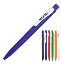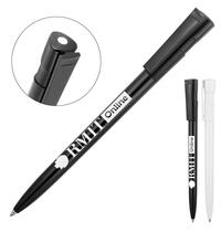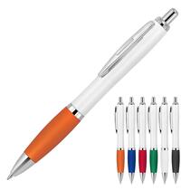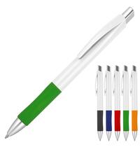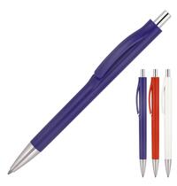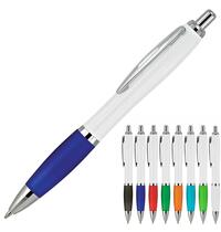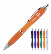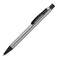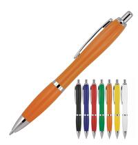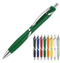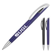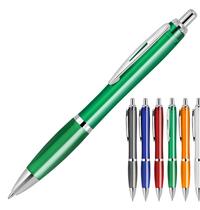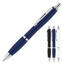 This sleek click-action ballpoint pen features a metallic silver plastic barrel, a sturdy metal pocket clip, and a soft grip that sits comfortably in your hand. Designed for smooth black ink writing, it’s a reliable choice for everyday use.