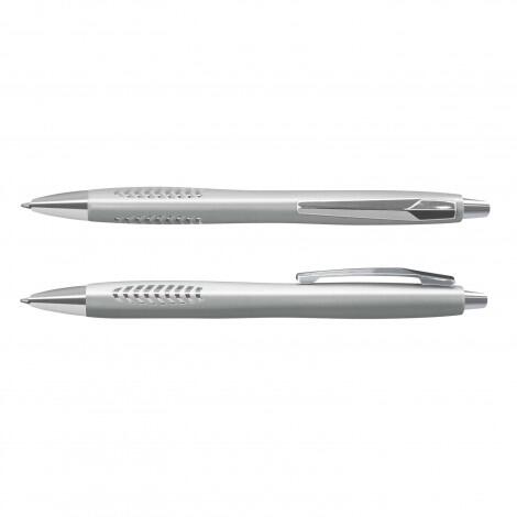 Retractable plastic ballpoint pen with a metallic barrel and shiny chrome trim. Topaz has a comfortable triangular grip with a futuristic chevron pattern that allows the shiny chrome inner barrel to show. It has a blue refill with 1800 metres of German manufactured Dokumental ink and can be presented in an optional pen sleeve.