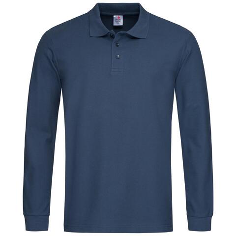 Soft single jersey long sleeve polo shirt for men, with a pleasing piqué look, rib collar, cuffs on sleeves and 3 tone-on-tone buttons.