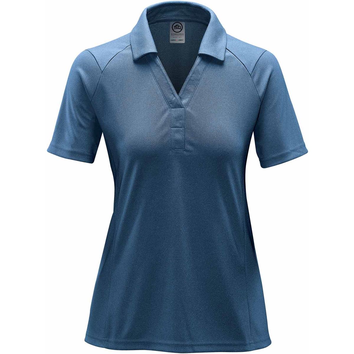 A double pique heathered polo with a combination shoulder that allows for unrestricted motion. H2X-DRY® technology wicks moisture away from the skin while the women’s offers an open-v buttonless placket and princess seams.