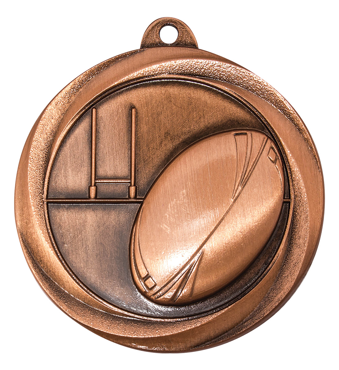 Economic series of medals to suit your budget requirements - the 3D Medal series presents excellently designed medals with high relief and detail to represent your sport or activity. Rugby theme design features exciting combination of ball and posts - space for your engraving on the back of every medal. Plenty of medal box and ribbon options to complete your selection.