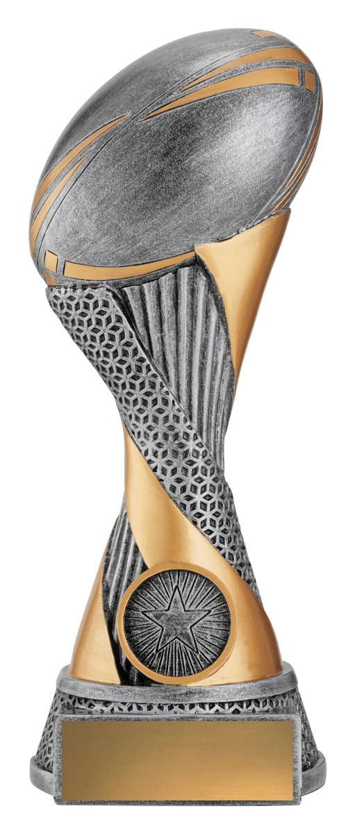 Apex trophies offer the combination of elegant design, multi-textured elements and brilliant silver & gold colours. Central space for your logo.