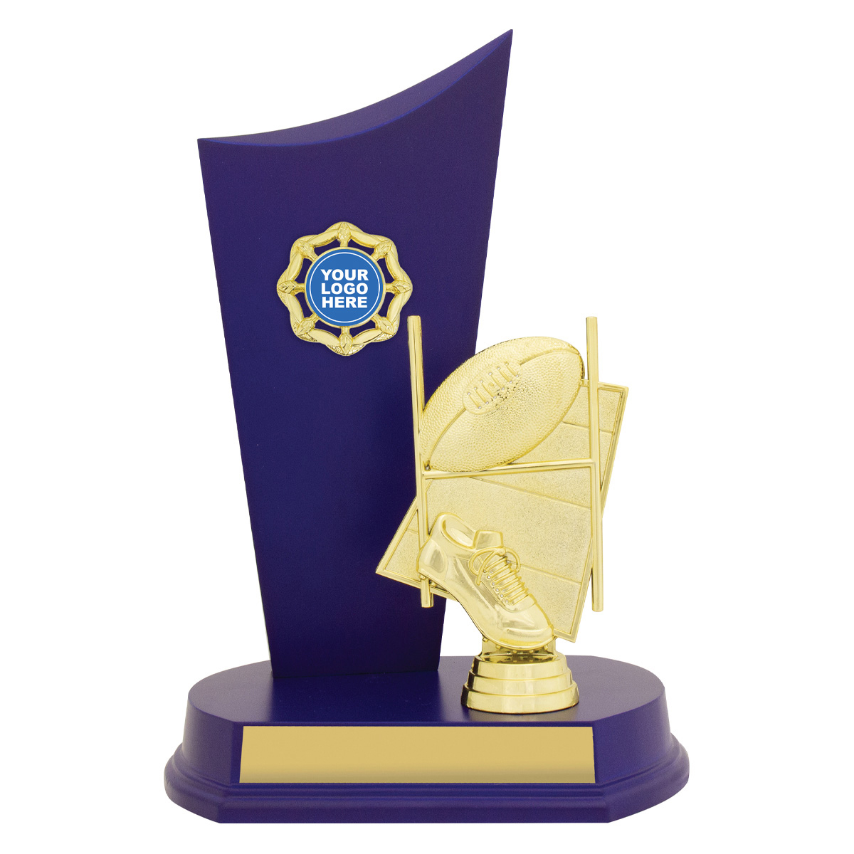 Striking series of timber wing based trophies - multiple sizes and space for your logo insert. Tops for all sports available.