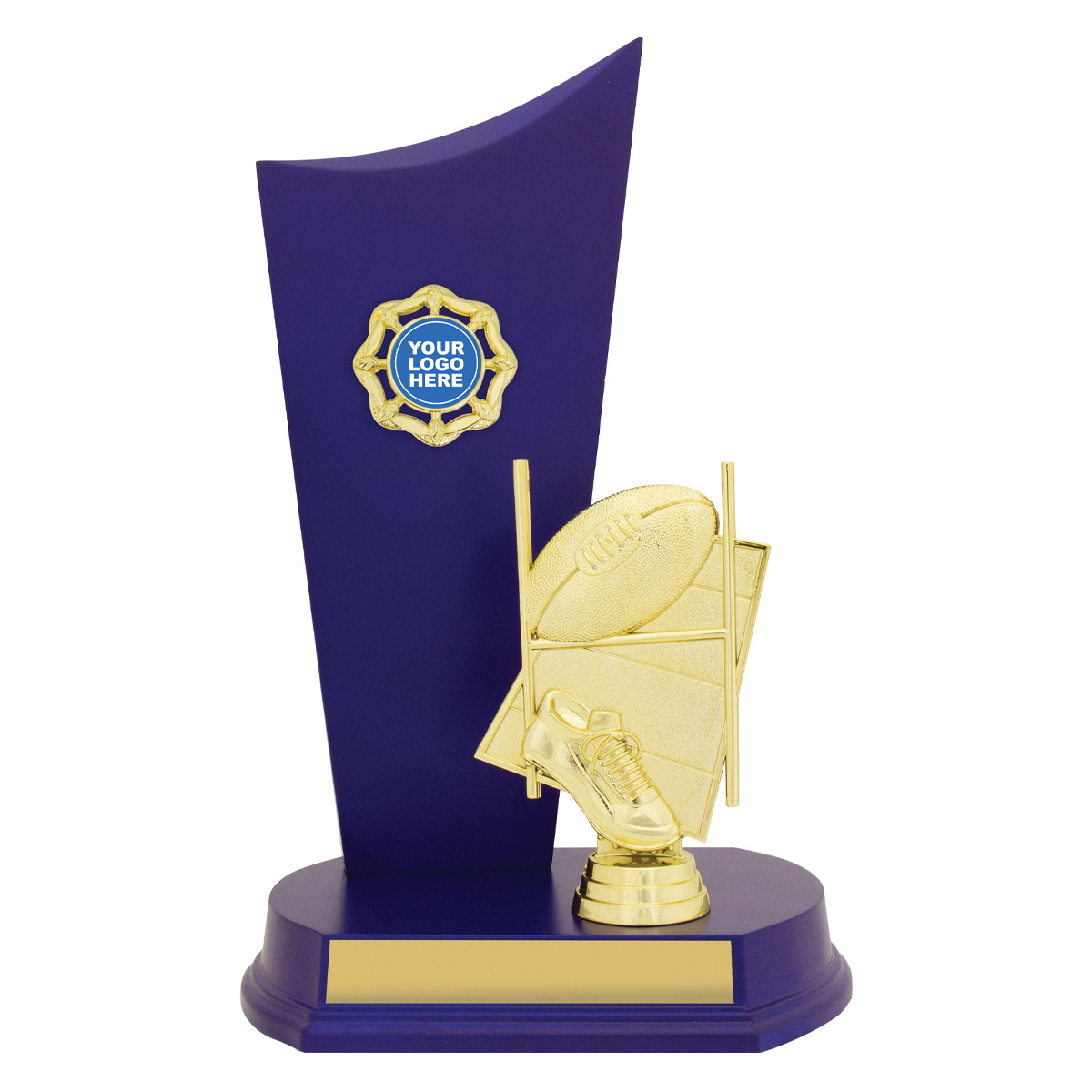 Striking series of timber wing based trophies - multiple sizes and space for your logo insert. Tops for all sports available.
