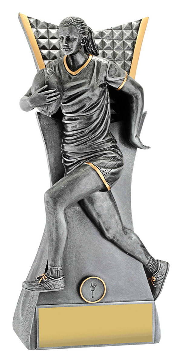 Fantastic series of trophies for your female and girls rugby league and union teams. Available in 6 extensive sizes - catering for many different budgets and award categories. Vanguard series presents a dynamic figure against a stylish backdrop, with space for your engraving and 25mm insert if required.