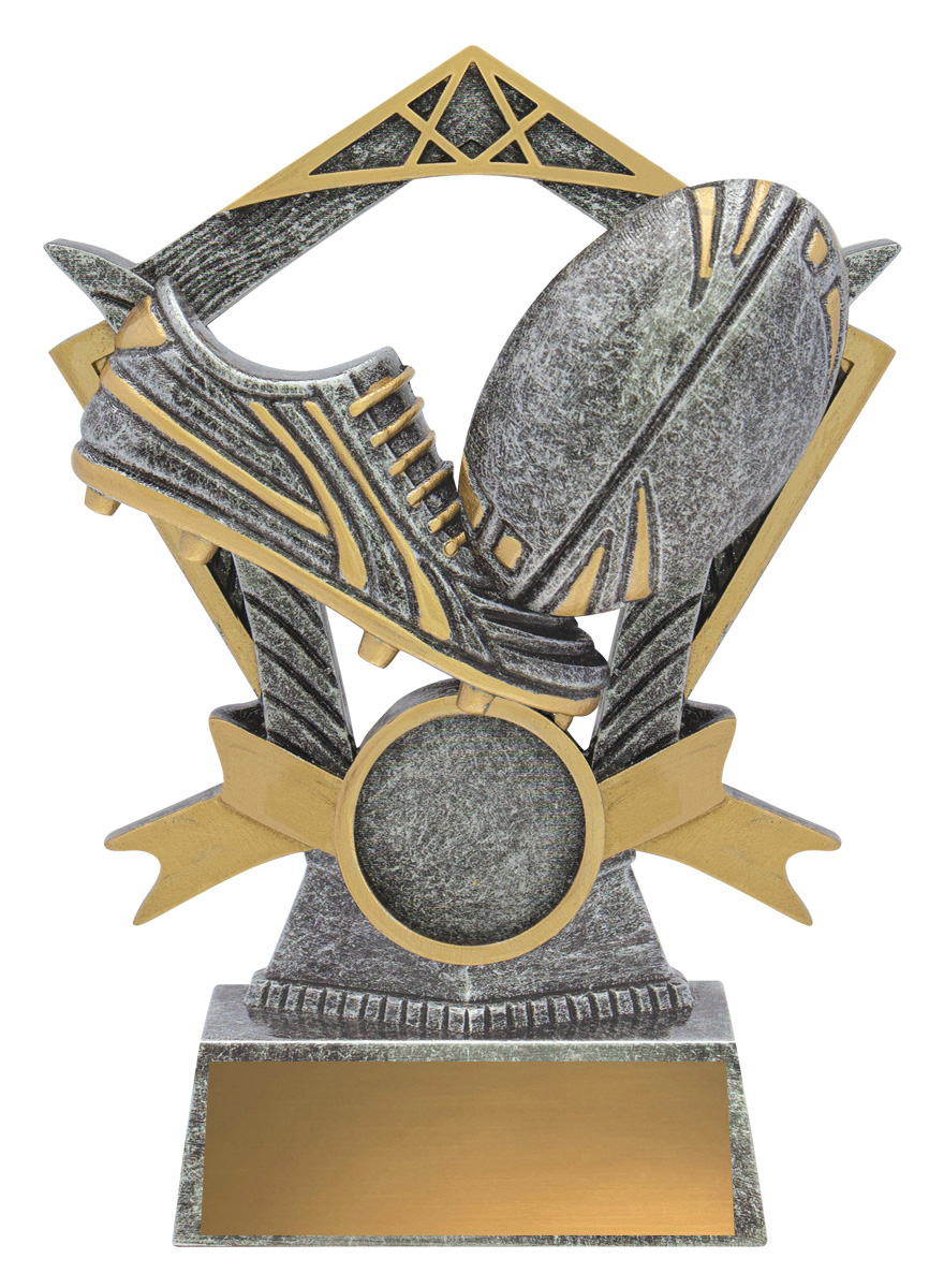 The Valour series of trophies presents a strong design of trophy highlighting the main elements for your sport. Finished in antique silver and gold with space for your custom logo.