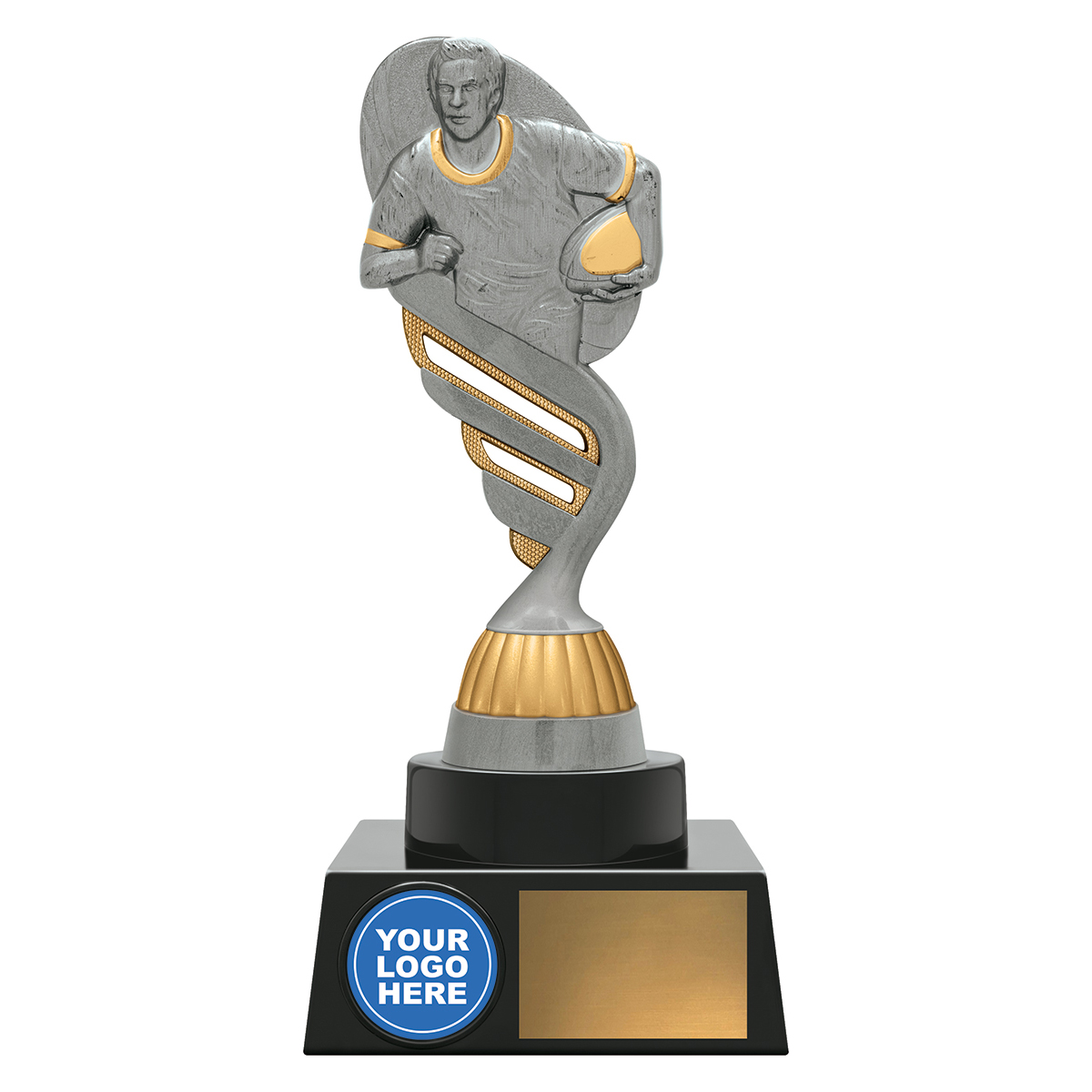 Reliable trophies for your club or team - stylish top finished in classic antique silver and gold colours with prime space for your logo if required.