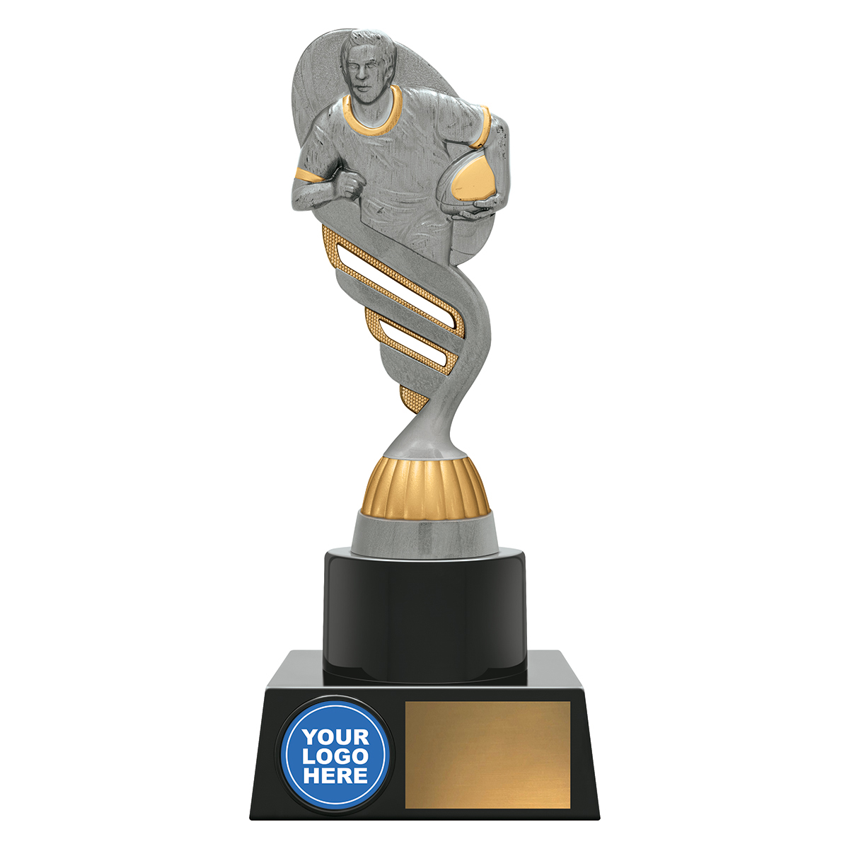 Reliable trophies for your club or team - stylish top finished in classic antique silver and gold colours with prime space for your logo if required.
