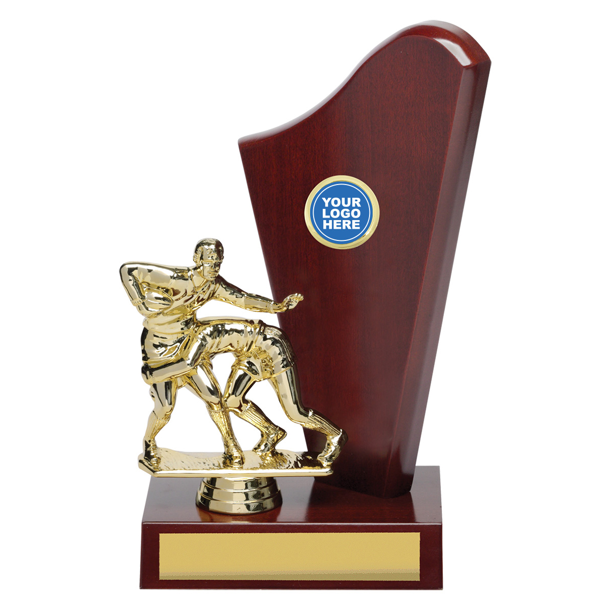 Different wave inspired trophies feature distinctive walnut timber and bright gold top for rugby league & union. Trophy series available in 3 substantial sizes - perfect for your best performing players. Note that figures are interchangeable for multi-part trophies.