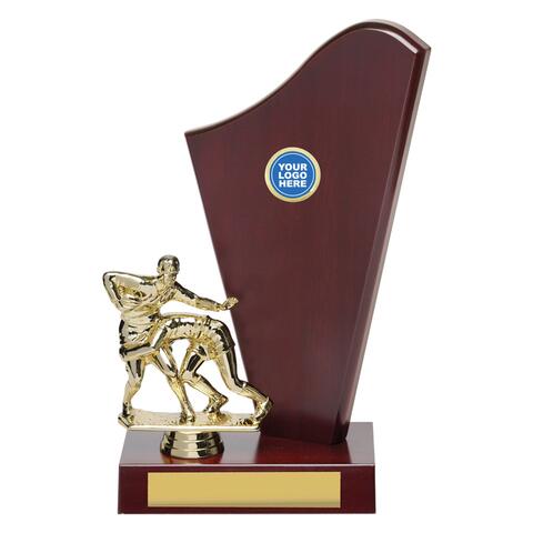 Different wave inspired trophies feature distinctive walnut timber and bright gold top for rugby league & union. Trophy series available in 3 substantial sizes - perfect for your best performing players. Note that figures are interchangeable for multi-part trophies.