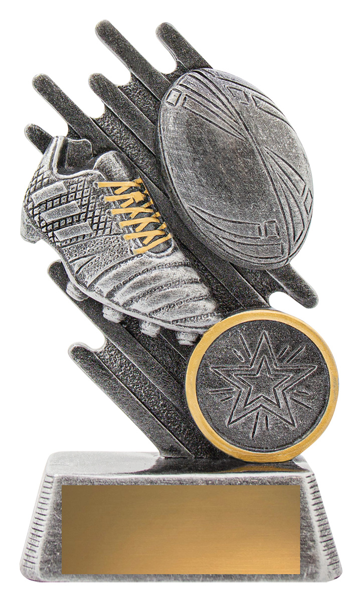 Zoom series of union or league trophies celebrates iconic elements of the sport over multiple sizes - ideal for both participation awards and best playing awards.