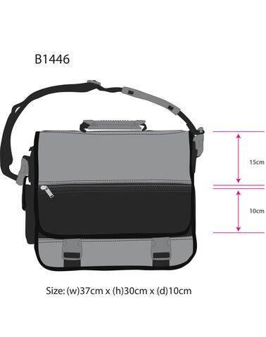 Product DetailsProduct Details FeaturesFabric: Polyester / Nylon 600D Size: (w)37cm x (h)30cm x(d)10cm, 11 Litres Capacity. Decoration: Badging, Embroidery, Digital Transfer Features: Carry Handle. Front Flap with zipper pocket. Internal Organiser Section & Zip Pockets. Double zip pullers. Embroidery accessible. Front grey Panel is 15cm hign and front black panel under the zip is 10cm high. Available coloursBlack/Grey Available decorationEmbroidery|Screen Printing