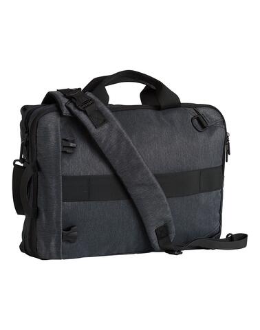 Product DetailsProduct Details FeaturesFABRIC100% Nylon waterproof Shell, 75Dx70D.SIZE30cm (W) x 41.5 (H) x 12cm (D) mm, 15 litres capacity. Unit weight: 0.8kgSTYLEDual purpose shoulder bag convertible to back pack option. Suitable for decoration with badging, embroidery and heat transfer. There are 2 main Main compartments: 1st has a secure padded laptop compartment with other multi pockets. 2nd compartment has large sleeve pocket and other multi pockets, one secured by zip. The front has one zip compartment containing attachments for back pack. There is a smart’ sleeve feature that allows attachment over extendable luggage handles. Available coloursMarl Black|Marl Charcoal Available decorationEmbroidery|Screen Printing