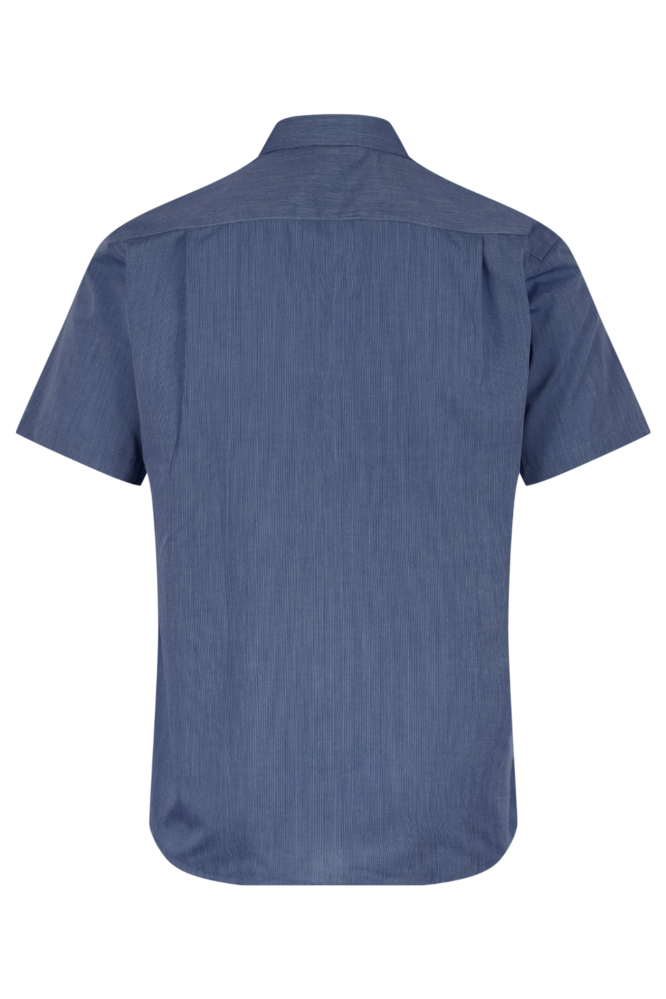 A top stitched collar and cuffs and an angled edge corner on the cuff and the pocket