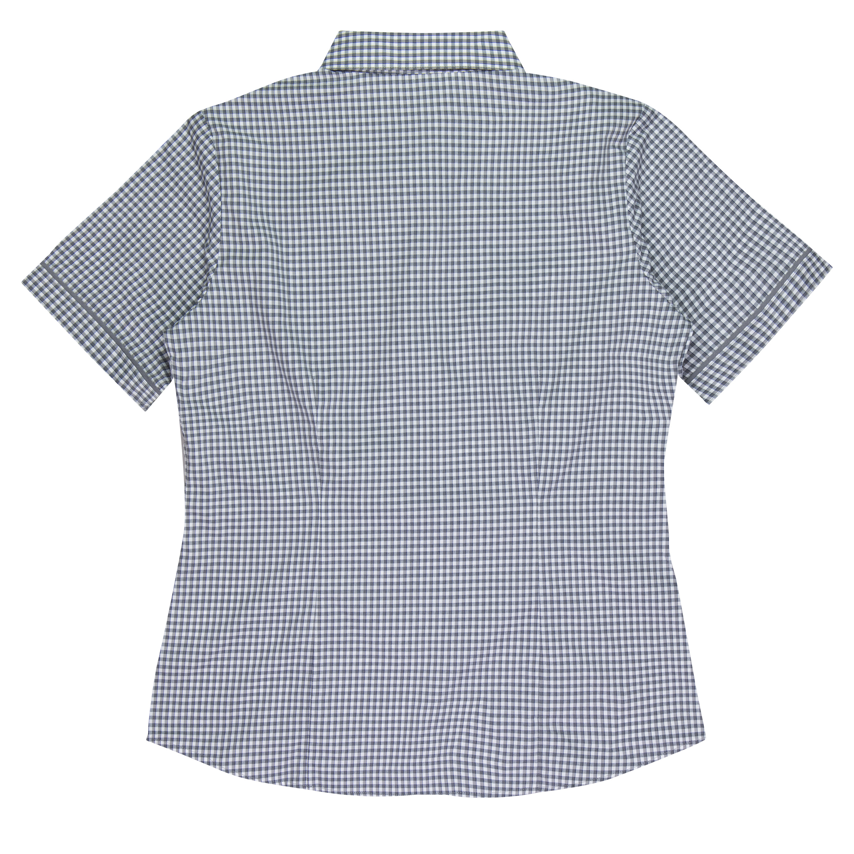 Edge stitched placket with tonal tape trim on under button placket and long sleeve cuff.
