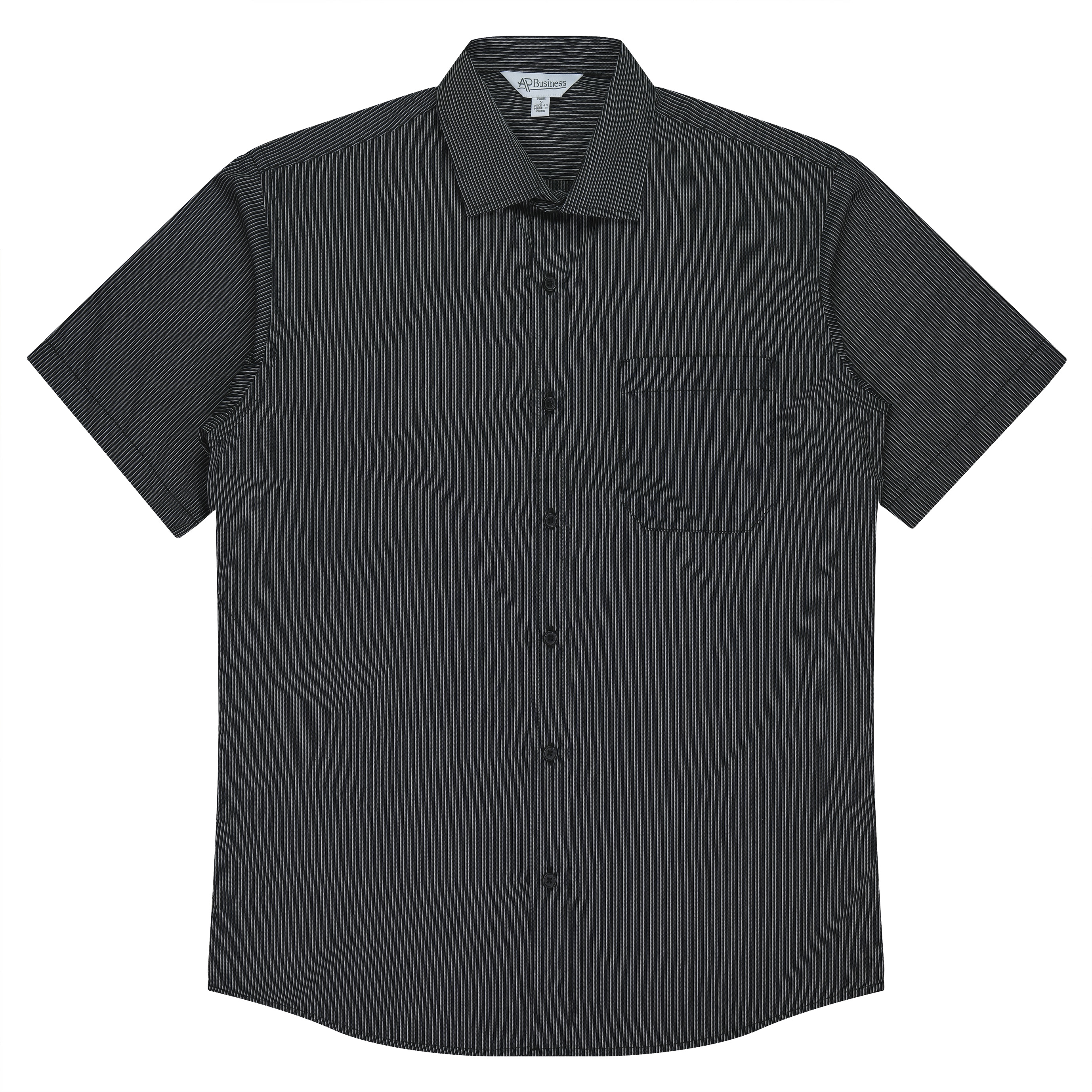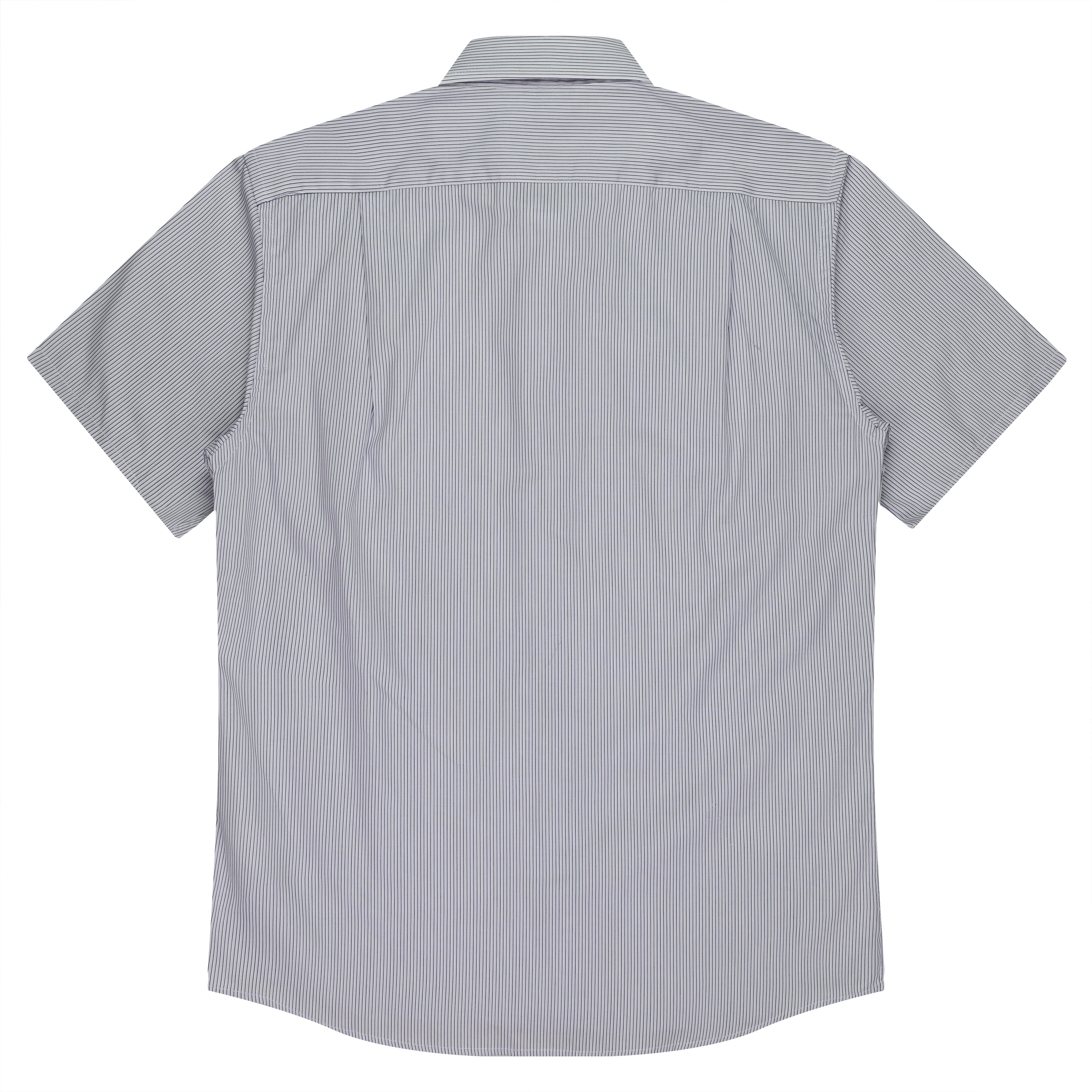 A superbly crafted, striped shirt featuring a top stitched and pleated front placket. The collar is top stitched with a contrast directional cut cuff with an angled finish.