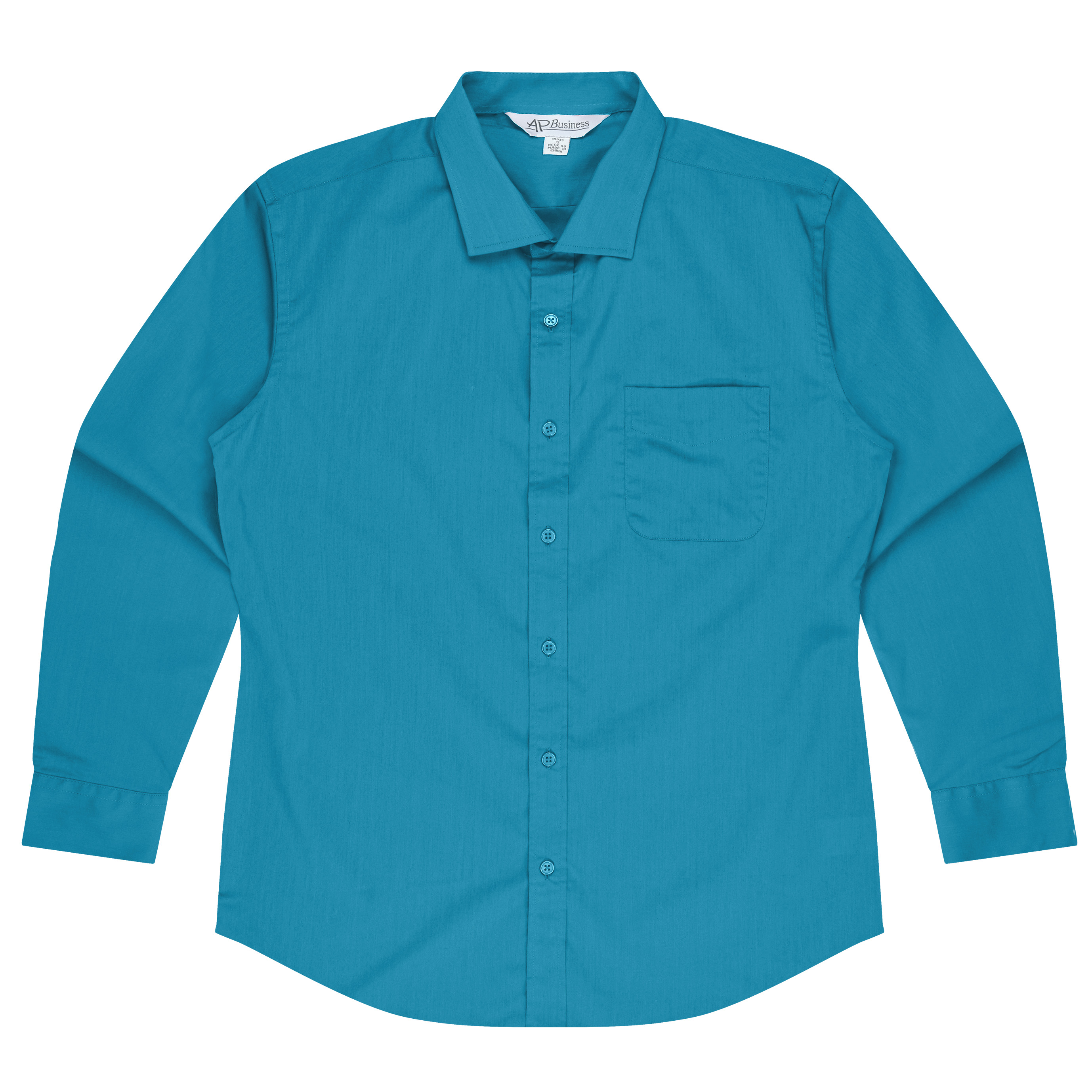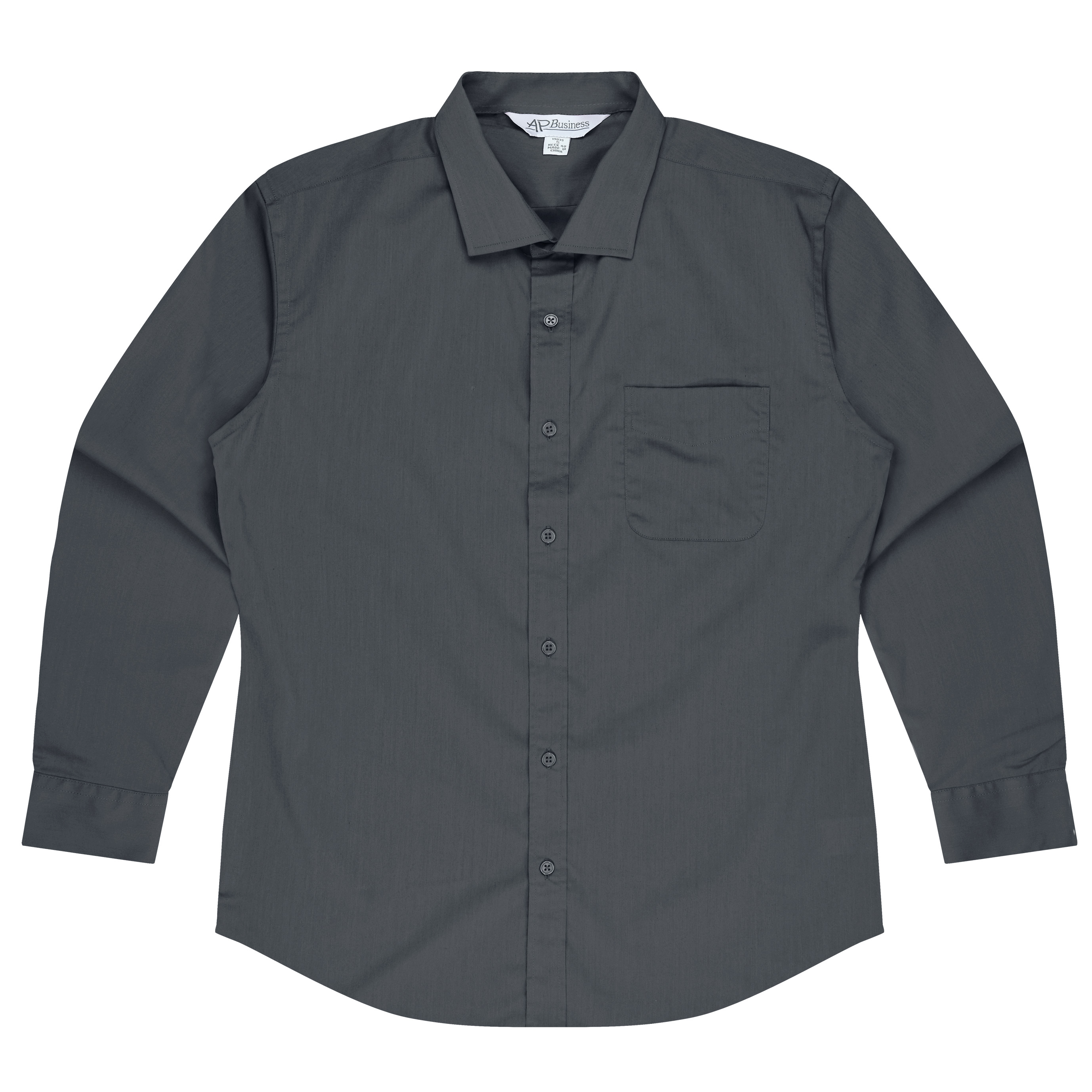 The Mens standard fit shirt has a back yoke with side comfort pleats and a rounded pocket.