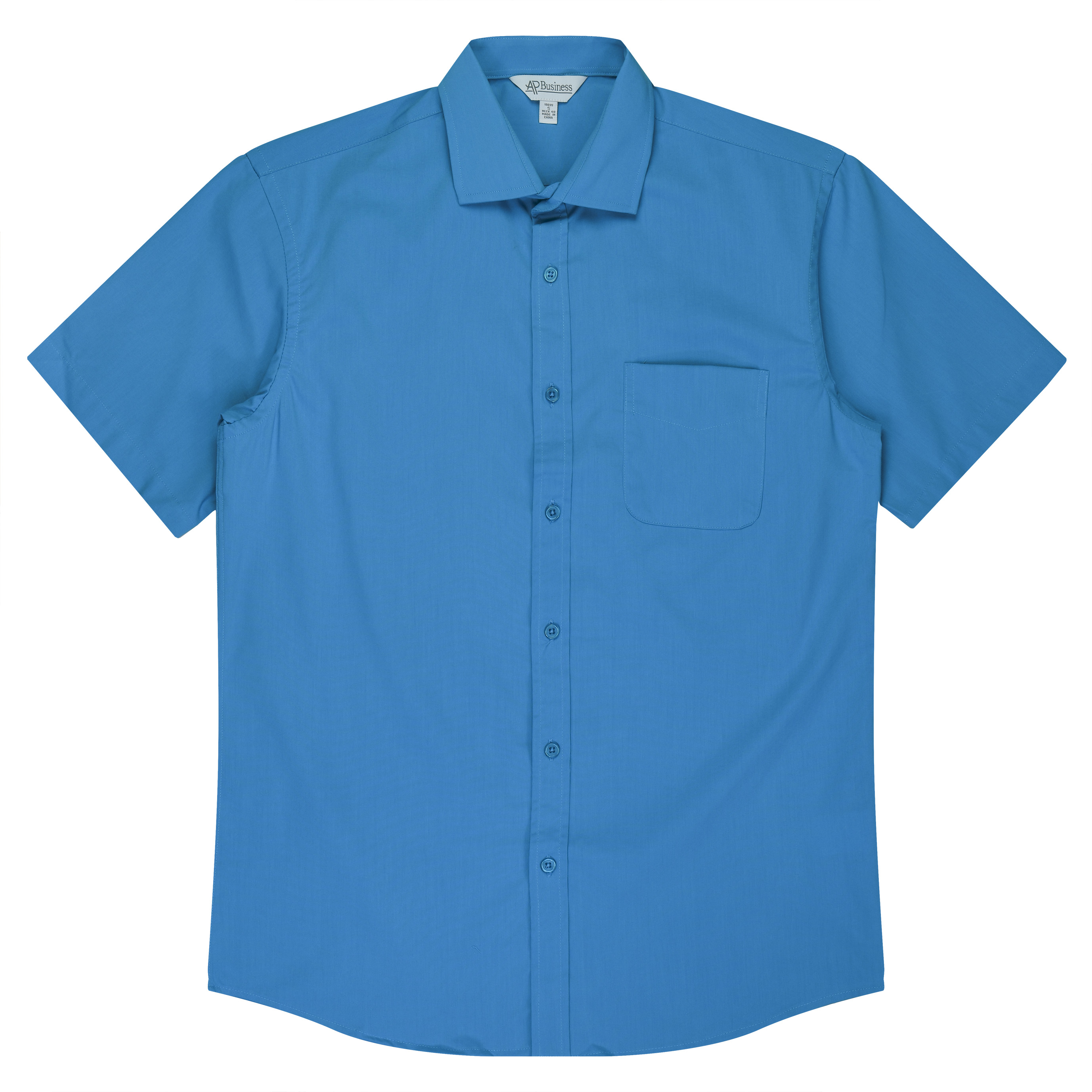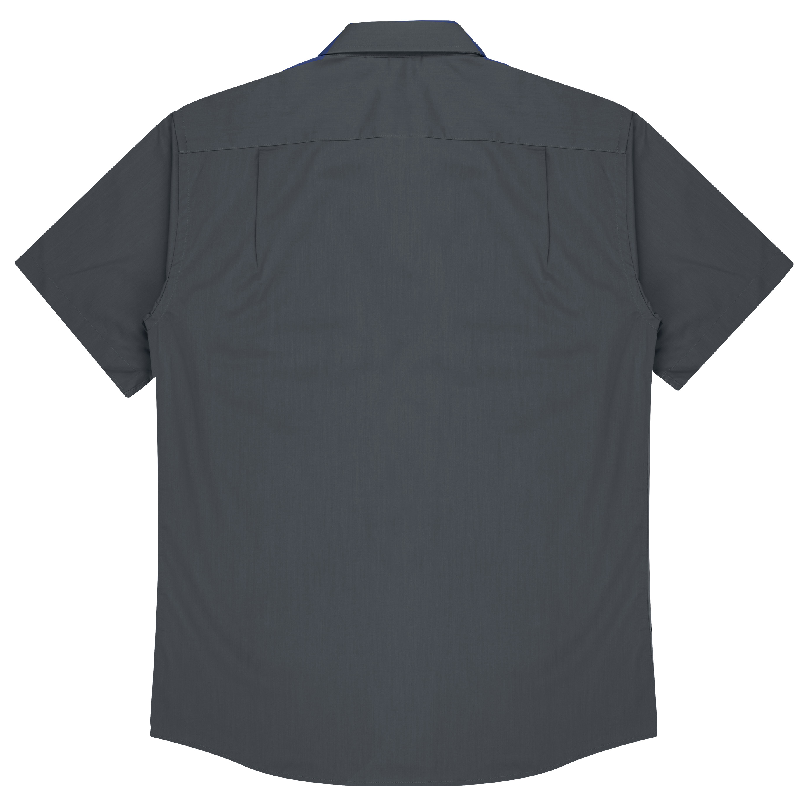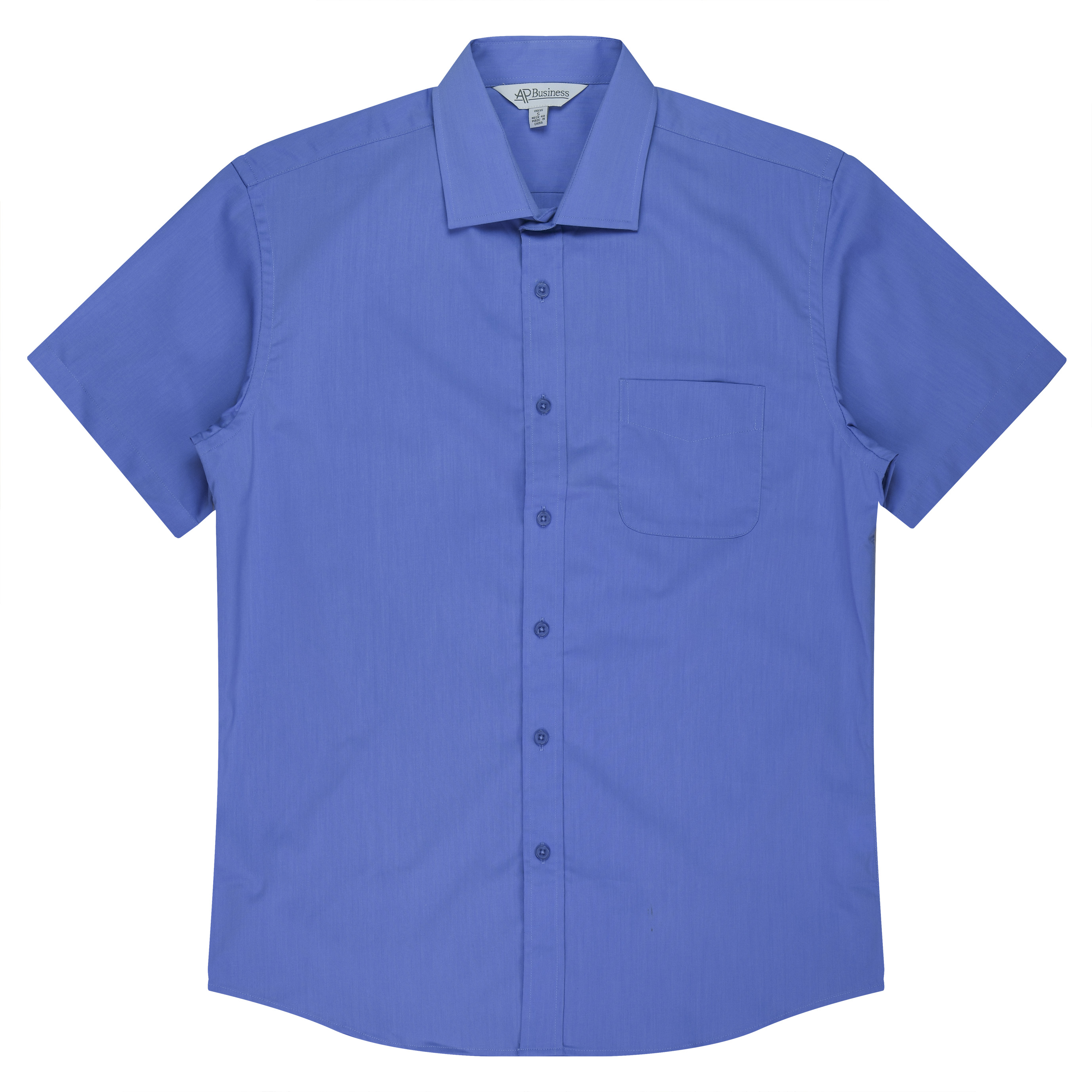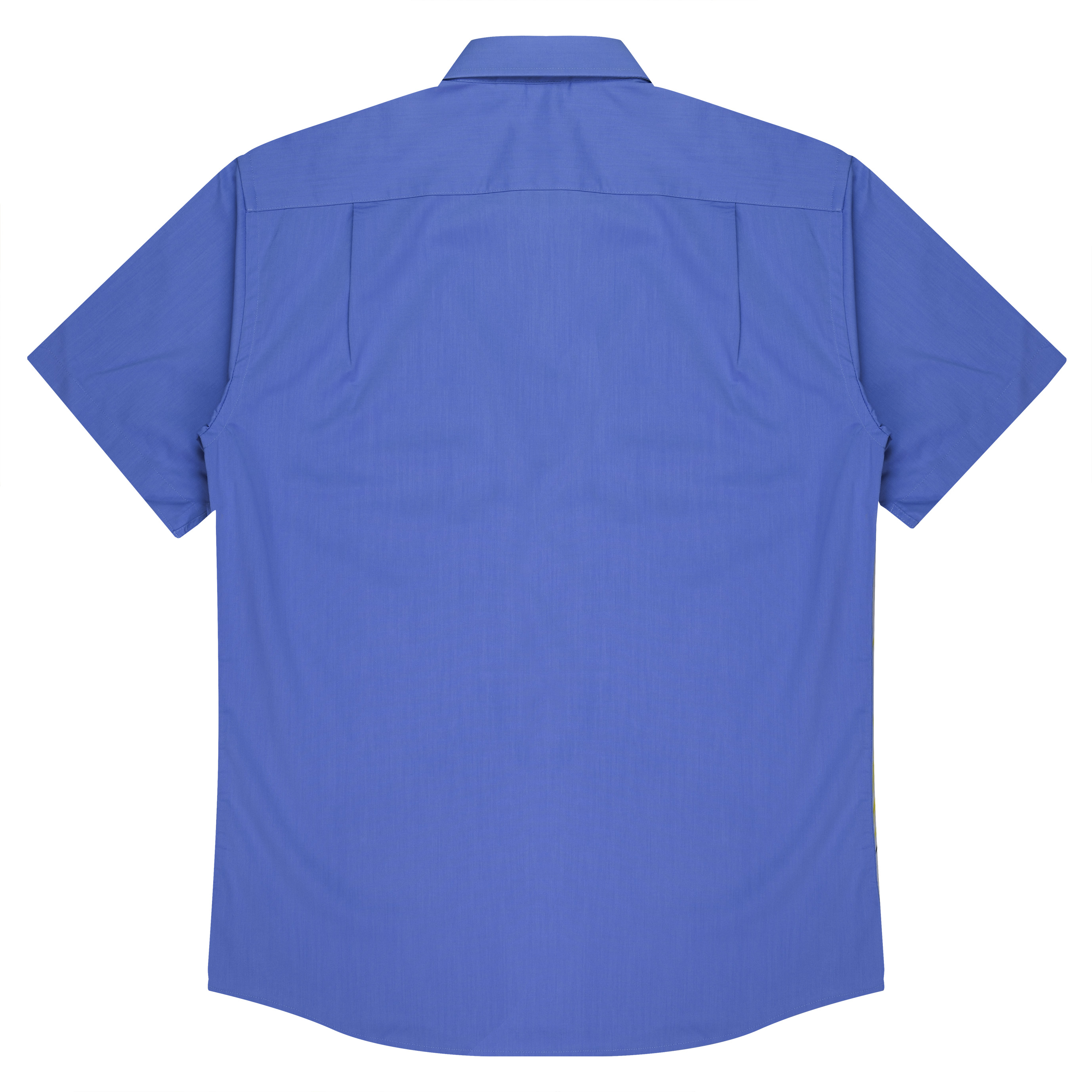 The Mens standard fit shirt has a back yoke with side comfort pleats and a rounded pocket.