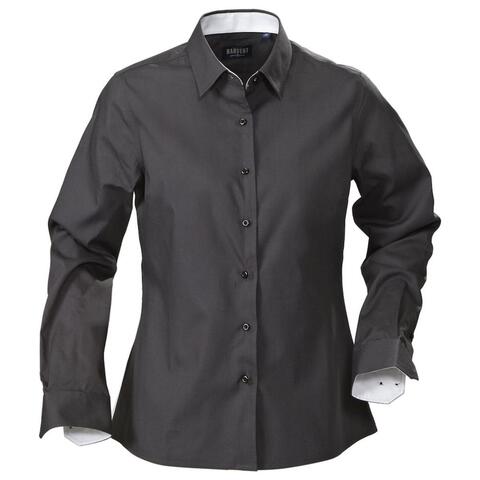 High quality ladies fitted blouse in easy care treated oxford fabric.