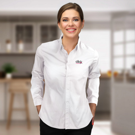 The TRENDSWEAR Parker Women's Poplin Shirt is made from a cotton and elastane blend, with the lightweight 120 gsm poplin fabric offering everyday comfort. Thoughtfully detailed with a seven-button placket and single-button cuffs, it's a smart choice for any occasion. A back yoke with a boxed pleat allows for a natural range of movement without compromising on structure. The fabric is OEKO-TEX Standard 100 certified, having been independently tested for harmful substances and proven safe for skin contact. Available in seven Australasian sizes.