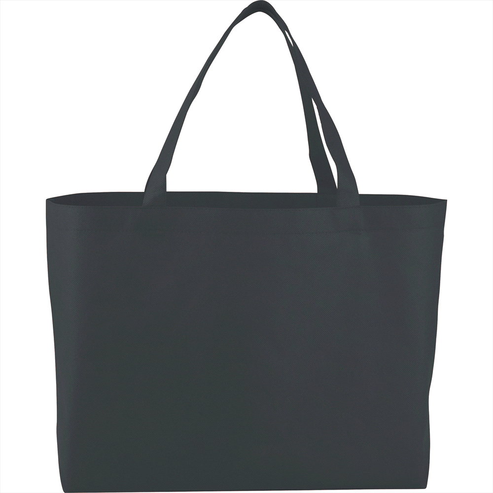 Large open main compartment with double 19 inch handles. Reusable and a great alternative to plastic bags. Capacity of approximately 20L.