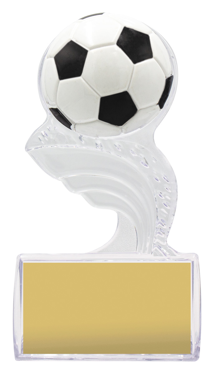 Budget series of soccer trophies ideal for bulk participation orders. Acrylic sports stand offers an alternative to traditional football trophies. Available in 2 sizes with ample space for engraving.