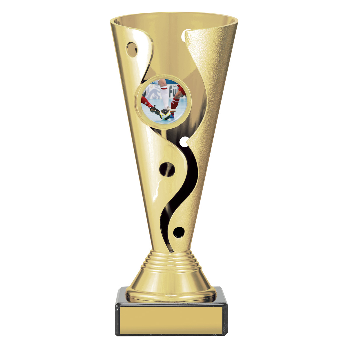 Carnival cups present a distinctive cup style trophy with attractive 3D design - on classic black marble base for your engraving - with brightly coloured insert for your sport. Trophies adaptable to your requirements.