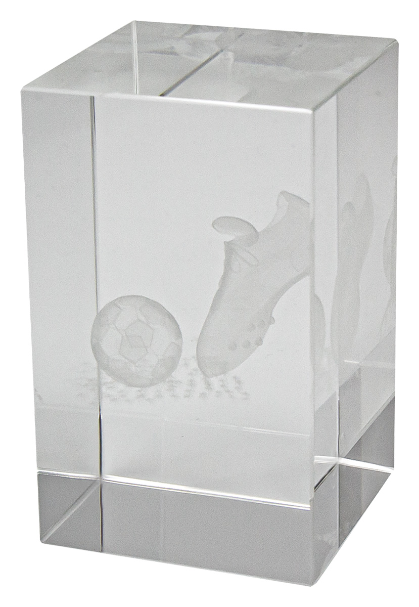 Hologram award for Football features 3D theme design with iconic elements - football & boot. A trusted option for various Football events and presentations, a prestige crystal block supplied in a presentation gift box.
