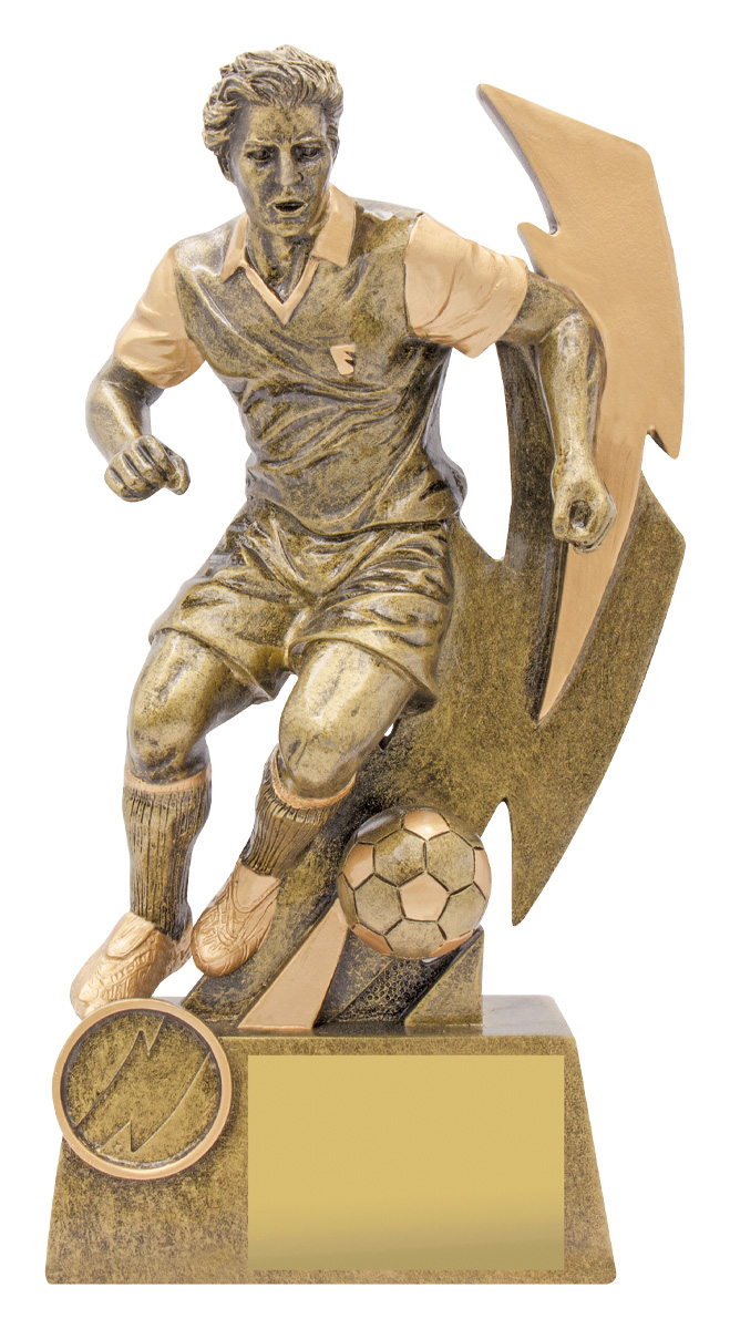 Football Shazam Trophy Series showcases a brilliant player - with excellent detail and completed in classic trophy gold colours. With 5 sizes, series of male football trophies perfect for your club award presentation.