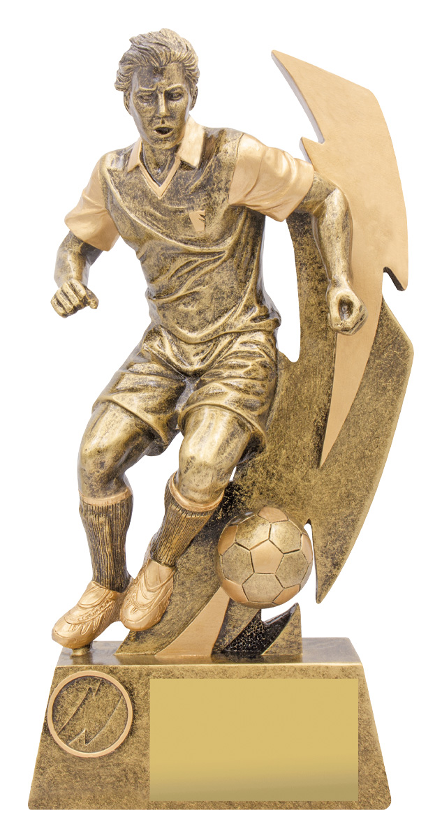 Football Shazam Trophy Series showcases a brilliant player - with excellent detail and completed in classic trophy gold colours. With 5 sizes, series of male football trophies perfect for your club award presentation.
