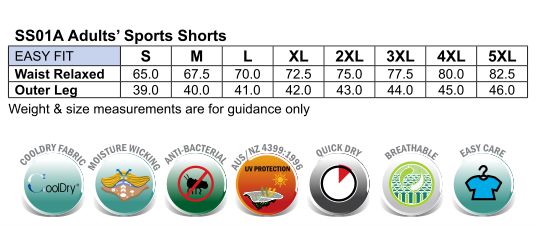 Product DetailsProduct Details FeaturesCoolDry Adults ShortsFabric: Cooldry Mesh 160gsm - 100% Polyester. With a zipped pocket on right hand side(when you wear) only. Description: Breathable mesh knitted fabric. Available coloursBlack|Navy Sizes1XL|2XL|3XL|4XL|5XL|L|M|S Available decorationEmbroidery|Screen Printing Size chartSize chart Size chart