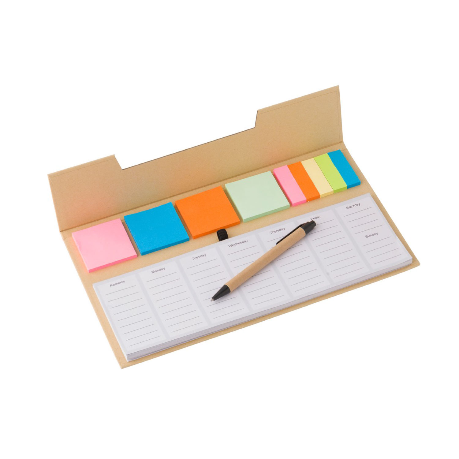 Stay organised with the OSAKA Memo Holder with Sticky Notes & Weekly Planner, a compact all-in-one desk essential. This practical set includes a memo holder, sticky notes, and a pen, along with 50 sheets of paper. The first five pages feature a weekly planner for quick scheduling, while the remaining sheets are blank for free notes and reminders. Perfect for offices, schools, or promotional giveaways, the OSAKA memo holder is a smart tool for daily productivity.