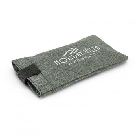 Luxury pouch with a Velcro closure for storing sunglasses and eye glasses. It is manufactured from poly-canvas with an on-trend heather style finish.