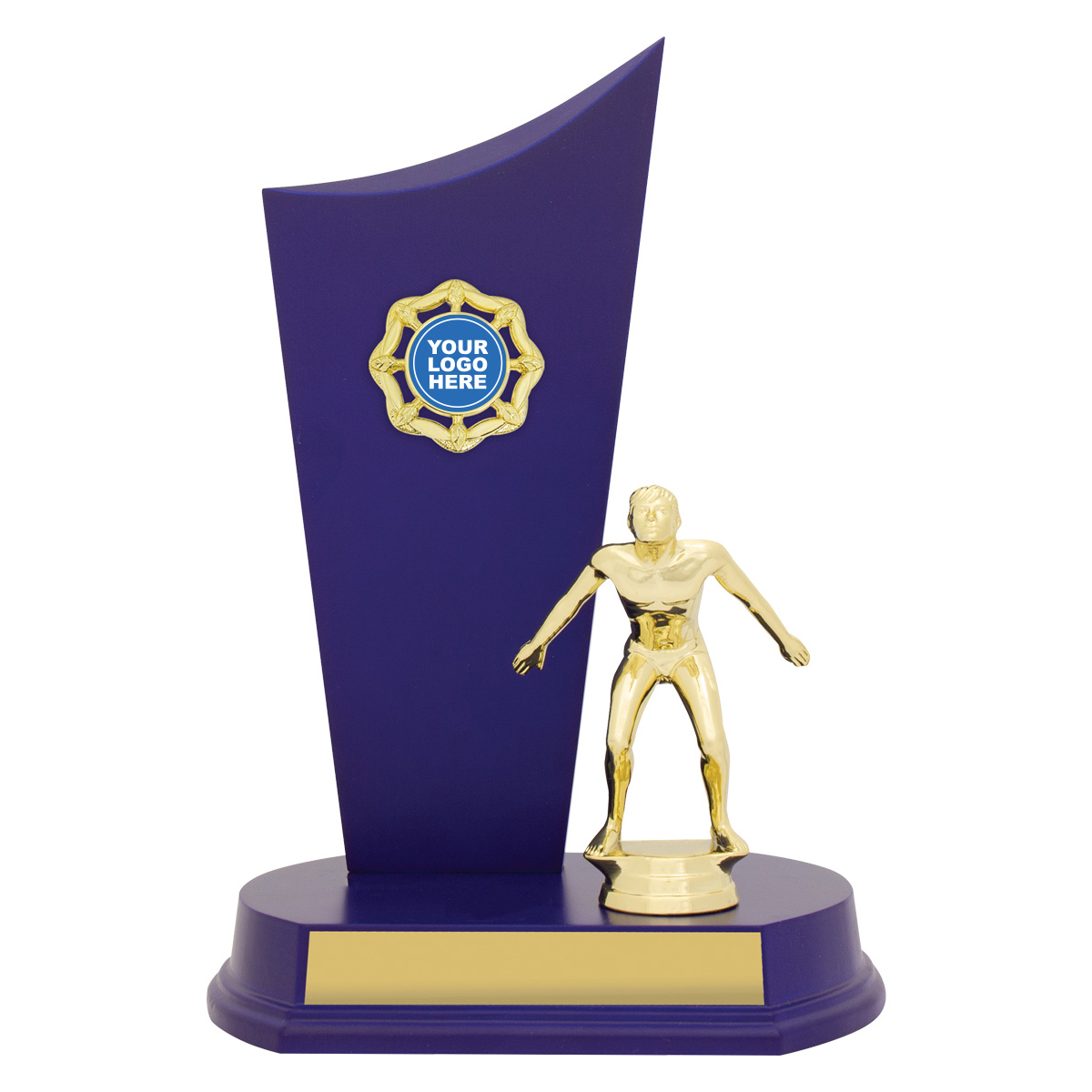 Striking series of timber wing based trophies - multiple sizes and space for your logo insert. Tops for all sports available.