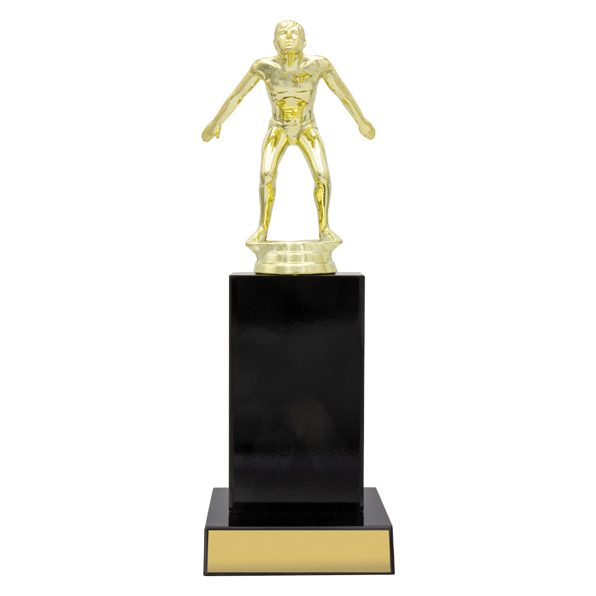 Swim figure on top of gloss black timber columns ideal for a range of awards for your club or team. Timber available in different colours. Male or female.