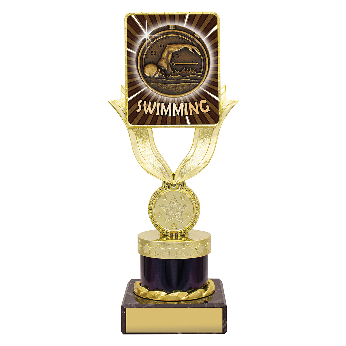 Brilliant swimming trophies in the Lynx Bold range features gold trophy holder showcasing the insert for your sport or activity. Range of sizes available.